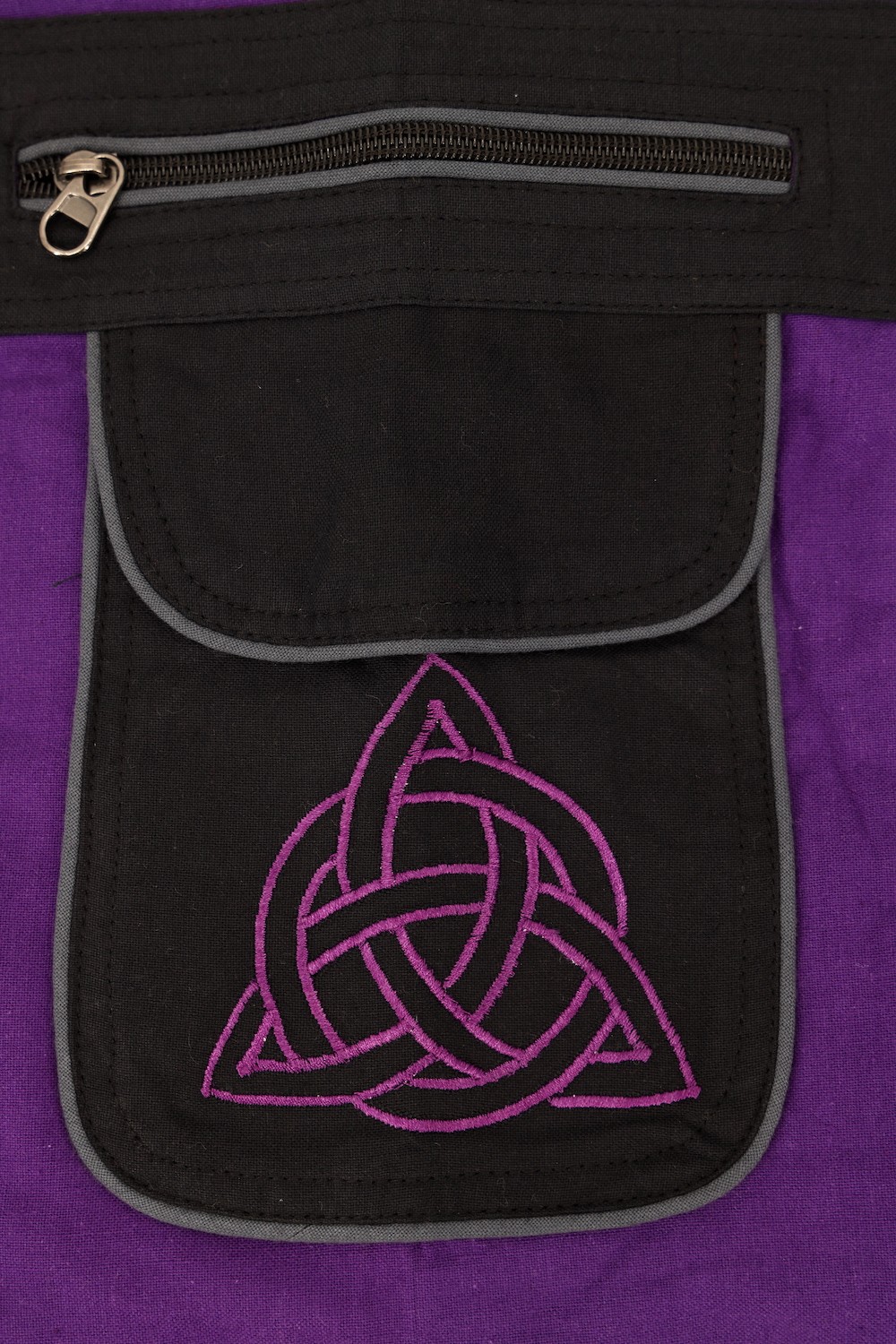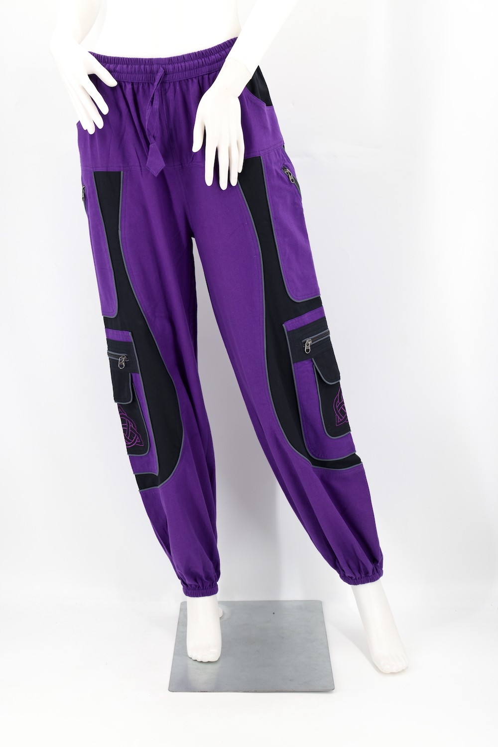 Step into a blend of ancient mystique and modern comfort with our Handmade Celtic triquetra shield knot Embroidered Cotton Harem Pants. Crafted from 100% natural handwoven cotton by skilled artisans in the Himalayas, these trousers feature intricate embroidery of the Celtic triquetra shield knot, which is a representation of the cycle of birth, life and death, and in Christian context is even said to represent the Holy Trinity.