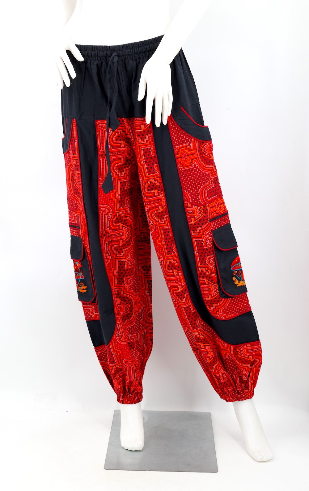 🎭 STYLING SUGGESTIONS: Pair with solid black or red tops to let the pattern shine. Add black boots or red sneakers. Keep accessories minimal - these pants are the statement! Perfect with fitted tops to balance the relaxed harem silhouette.