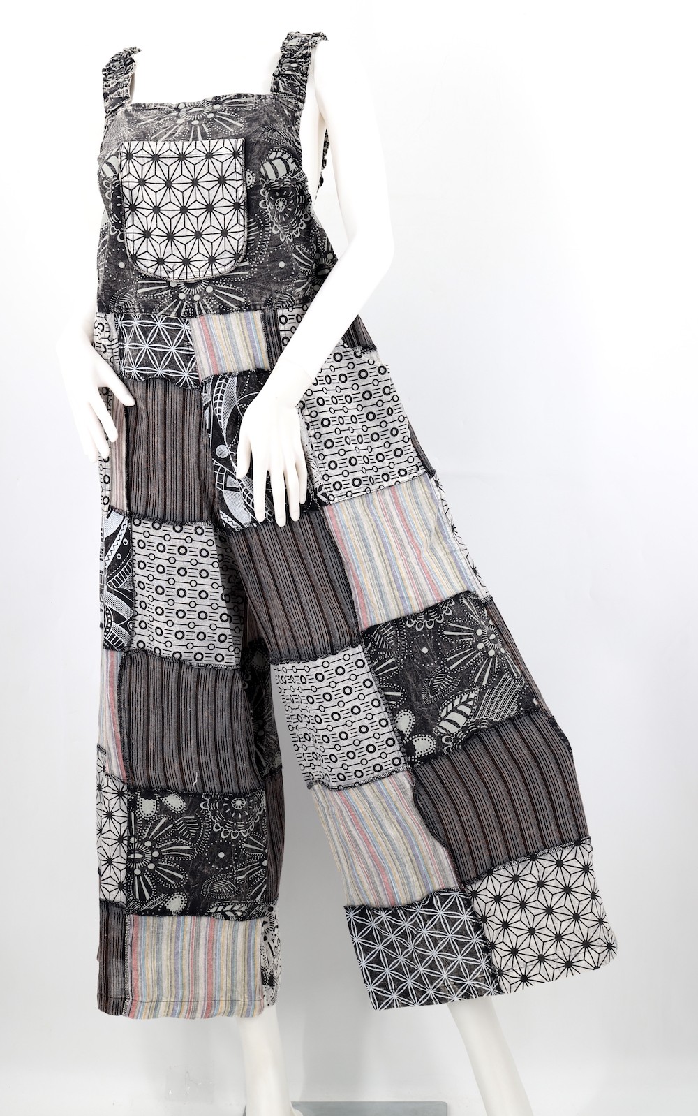 These Unique Hippie Wide Leg Geometric Print black and white overlock patchwork overalls are crafted from the finest 100% Natural Handwoven Cotton by some of the most skilled artisans. Elevate your style instantly with these extraordinary and highly fashionable Multicolor Patchwork Block Print Overalls that are suitable for almost any occasion, ensuring you look your best every single time.