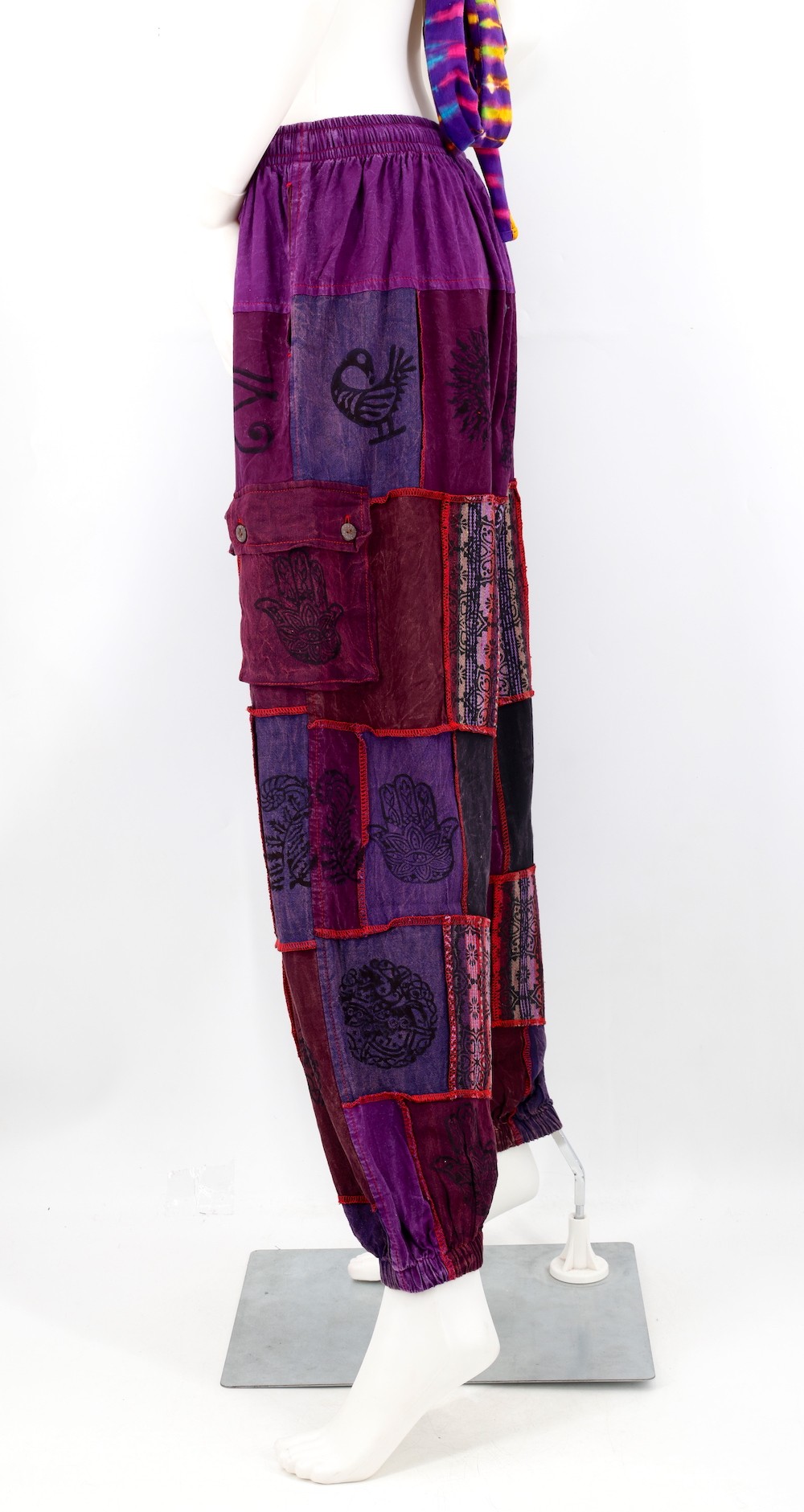 These unique Hippie Purple Colored Gheri Mix Patchwork Pants are crafted from the finest 100% Natural Handwoven Cotton by some of the most skilled artisans. Elevate your style instantly with these extraordinary and highly fashionable Patchwork Pants that are suitable for almost any occasion, ensuring you look your best every time.