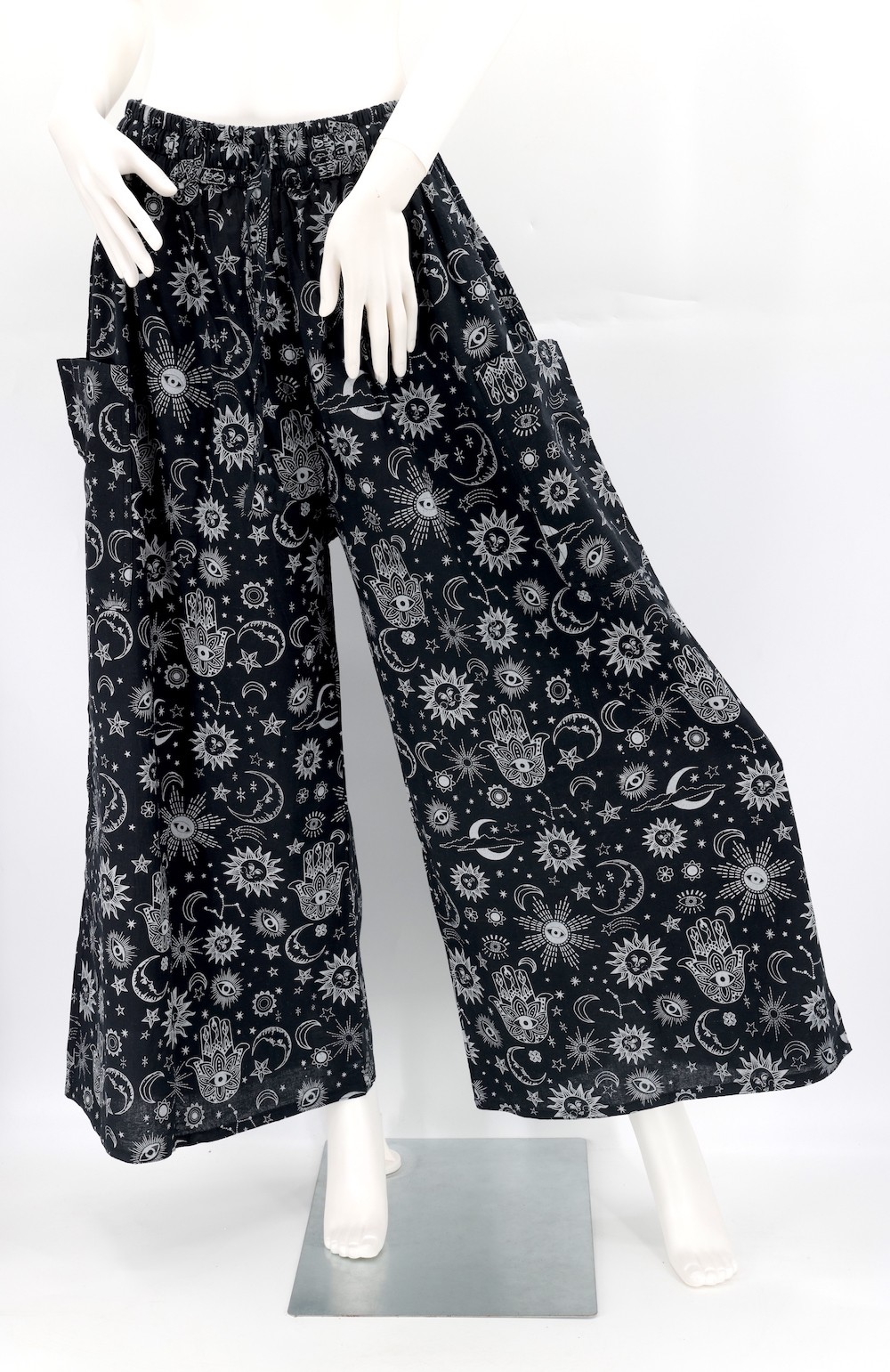 These unique Hippie Celestial Print Pants are crafted from the finest 100% Natural Handwoven Cotton by some of the most skilled artisans. Elevate your style instantly with these extraordinary and highly fashionable Wide-Leg Pants, which are suitable for almost any occasion and ensure you always look your best.