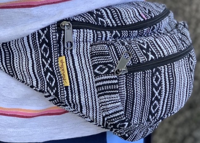 100% pure Hand woven Gheri Cotton Multi Black Color money belt (Fanny Pack) handmade in Nepal. This product can be use by both men and women west or can be worn lower on the hips. This bag has charming features, it is practical and versatile because it can be belt bag/fanny pack /shoulder bag, it has 3 pockets with zippers, the belt is adjustable 32 - 45 inch which can make shorter and longer as well. It is fair trade product. Size: 29 x14x10 cm (12.5x5.5x4 inches)