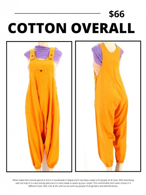 What makes this overall special is that it is handmade in Nepal and it has been made to fit people of all sizes. With that being said not only is it a very trendy piece but it is also made to spark up your closet. This comfortable item wear comes in 3 different sizes: S/M, L/XL & XXL and can be worn by people of all genders and identifications.