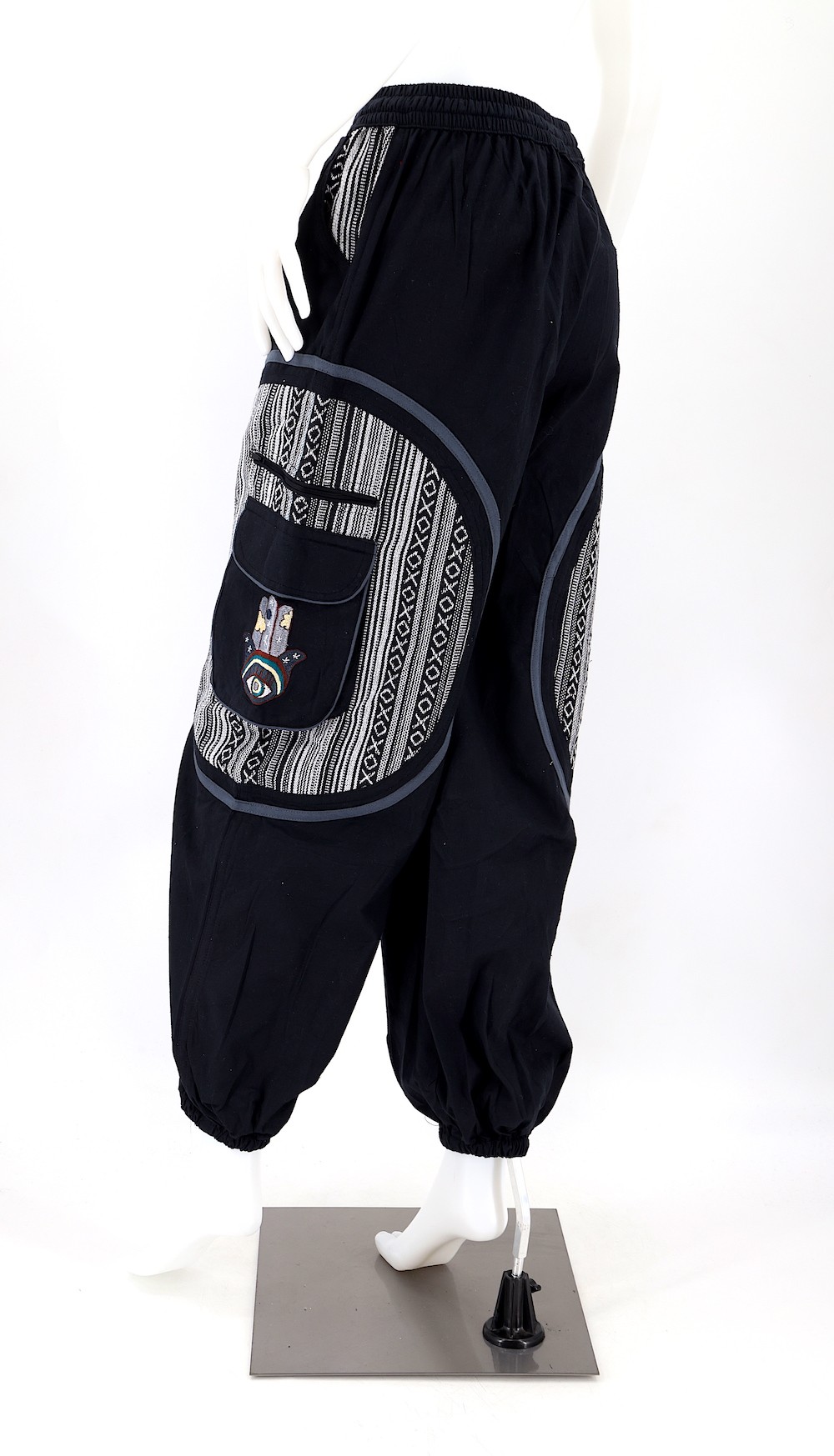 These unique Hippie Solid Color Plain Hamsa Hand Gheri mix Pants are crafted from the finest 100% Natural Handwoven Cotton by some of the most skilled artisans. Elevate your style instantly with these extraordinary and highly fashionable Solid Color Pants that are suitable for almost any occasion, ensuring you look your best every single time.