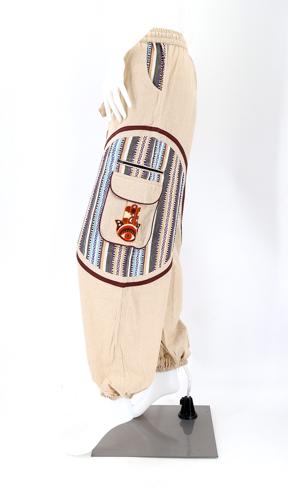 These unique Hippie Solid Color Plain Hamsa Hand Gheri mix Pants are crafted from the finest 100% Natural Handwoven Cotton by some of the most skilled artisans. Elevate your style instantly with these extraordinary and highly fashionable Solid Color Pants that are suitable for almost any occasion, ensuring you look your best every single time.