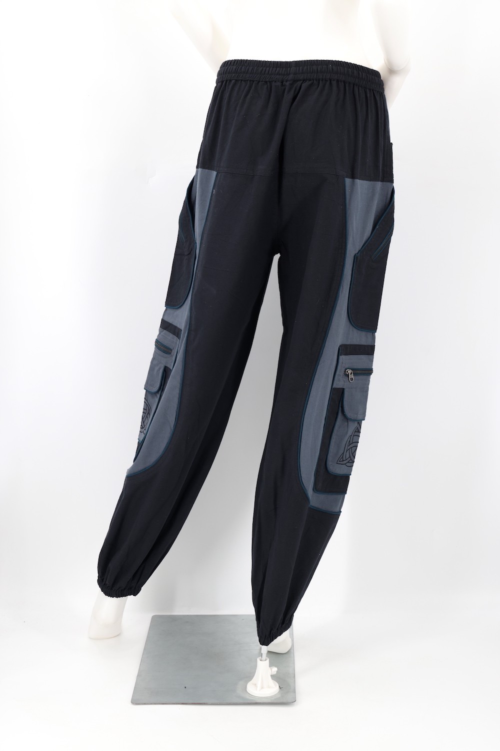 Step into a blend of ancient mystique and modern comfort with our Handmade Celtic triquetra shield knot Embroidered Cotton Harem Pants. Crafted from 100% natural handwoven cotton by skilled artisans in the Himalayas, these trousers feature intricate embroidery of the Celtic triquetra shield knot, which is a representation of the cycle of birth, life and death, and in Christian context is even said to represent the Holy Trinity.