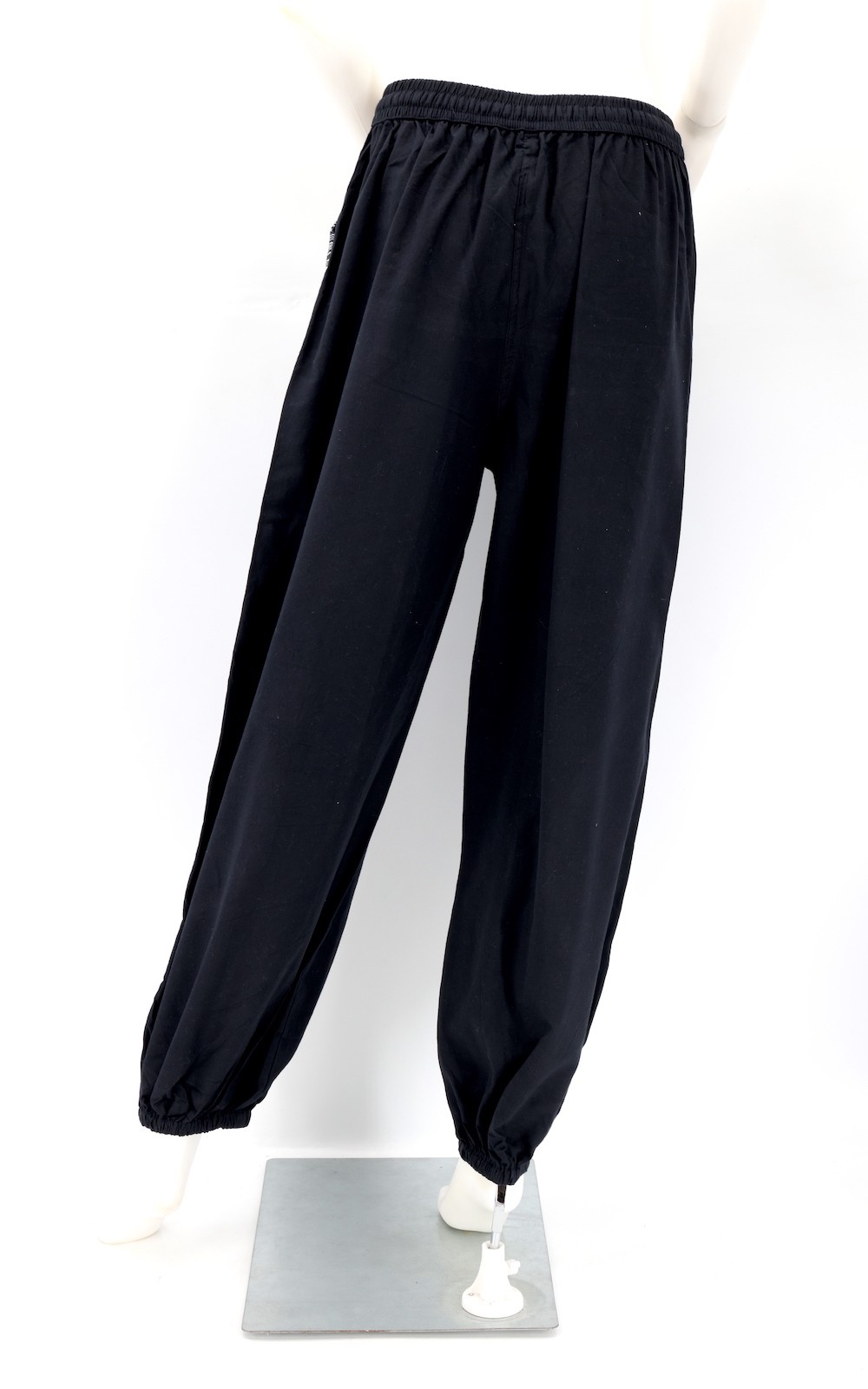 These pants come with an adjustable waist that can be easily tailored to your needs, depending on your size. Each side boasts three pockets, featuring a larger pocket with a secure zipper to keep your items and valuables safe, as well as a smaller buttoned pocket for added convenience, in addition to smaller pockets in the hips. Additionally, the elasticated ankles provide a comfortable fit.