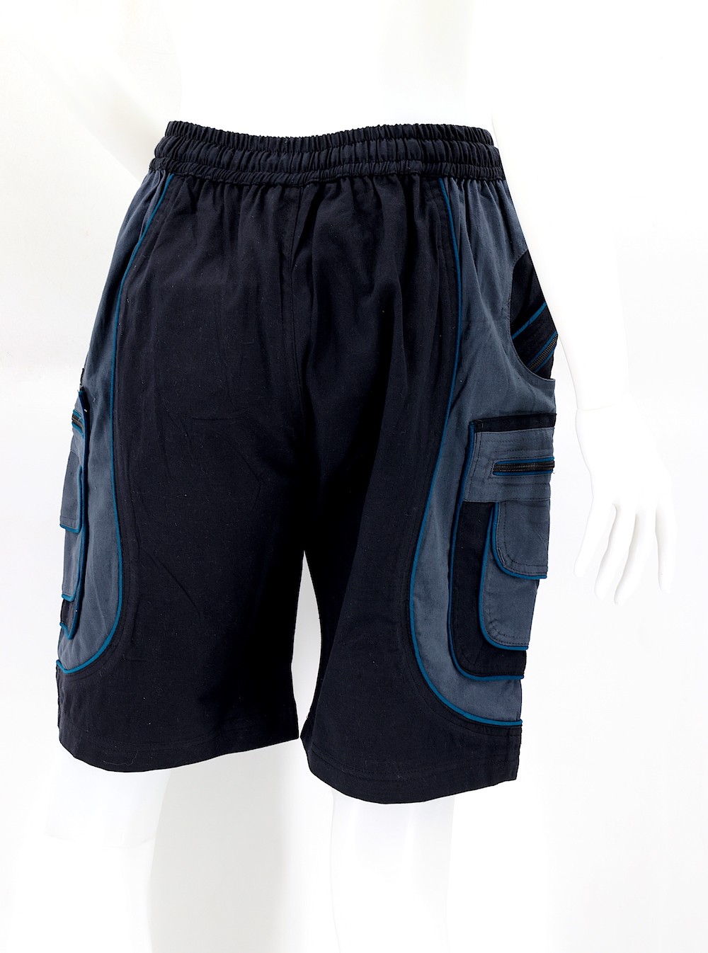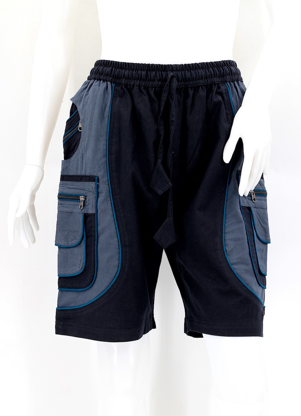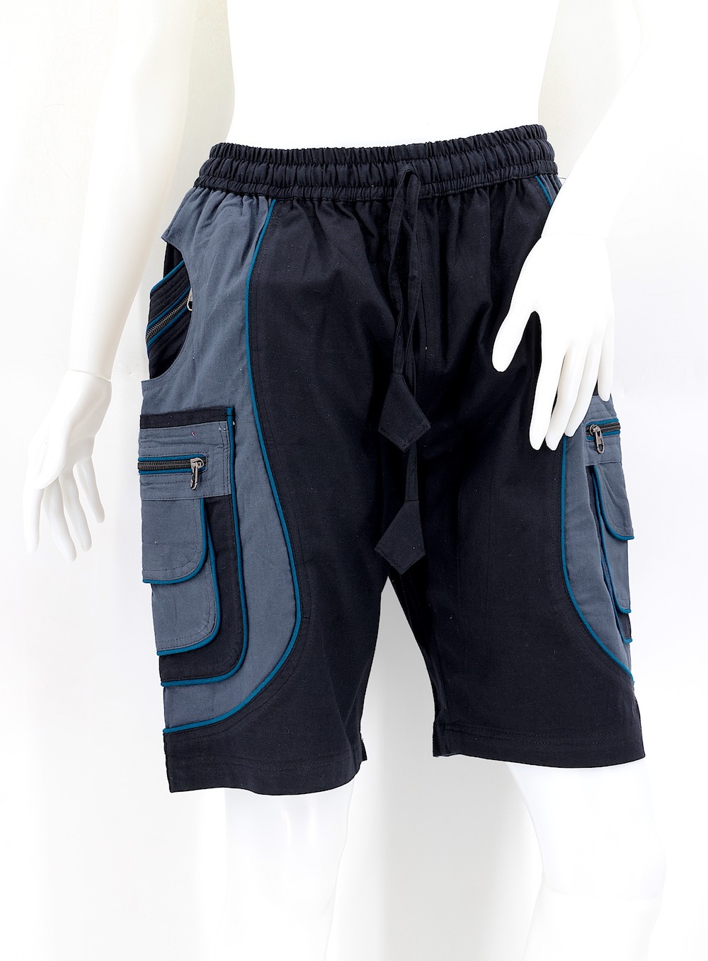 These shorts come with an adjustable waist that can be easily tailored to your needs, depending on your size. Each side boasts three pockets, featuring a larger pocket with a secure zipper to keep your items and valuables safe, as well as a smaller buttoned pocket for added convenience, in addition to smaller pockets in the hips. There is also a zippered pocket on the left-hand side.