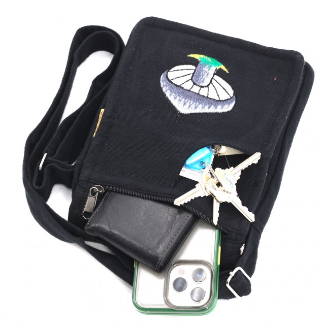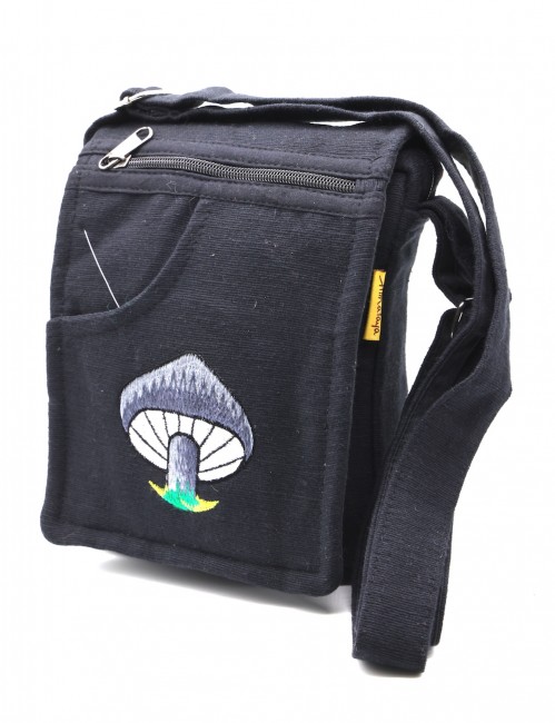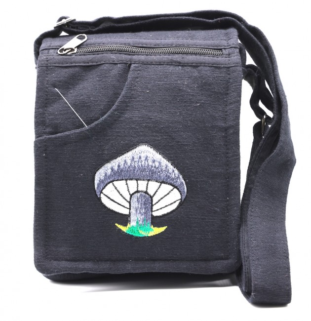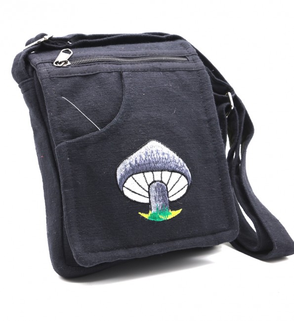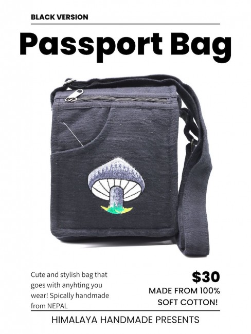 This beautiful Mushroom embroidered 100% pure cotton passport bags are handmade in Nepal. This beautiful passport bag features are it has one pocket in the front & one pocket in the back, it has two compartments, a large main compartment with zippered pocket inside and it has a long adjustable strap 11”-24” inch which you can clutch the bag across your body. This cotton passport bag is extraordinary and fashionable. This passport bag is suitable for carrying document, Mini Tablet, Mobile Phone and Purses.