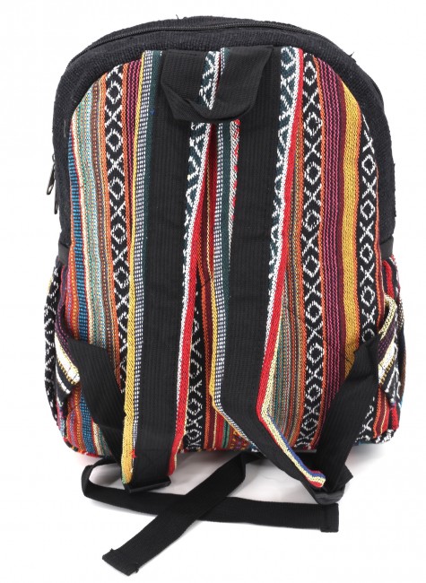 At Himalaya Handmade we are known for creating the modern Mini hemp backpacks that are now available in profusion of design and colors. Our Mini backpack with multicolor Aztec pattern is made from eco-friendly natural hand-woven hemp and cotton fabric and it is beautifully handcrafted in Nepal, they are high quality and this backpack has everything you need. You will not find higher quality anywhere else. All of our bags are sourced from the mountainous regions of Nepal and are all 100% Handmade. This backpack features are it has a unique multi colored pocket. Handcrafted this Backpack Includes, laptop compartment – fits up to large tablet, 4 separate zippered compartments with 2 pockets, 2 water bottle holders, extremely strong construction, strong original two metal zippers on main compartment, soft padded straps and made from 100% Hemp, the entire bag is extremely strong but also breathable. Color of these bag will not be exact because arrangement of the pattern and these bags are handmade so in color can be slightly different. Pictures color are just example. Every bag is handmade and therefore unique.