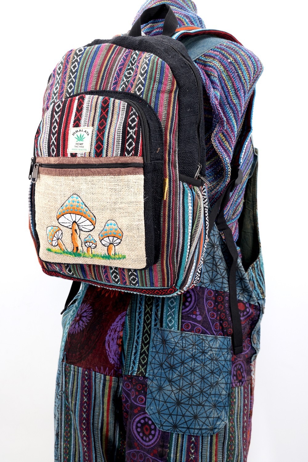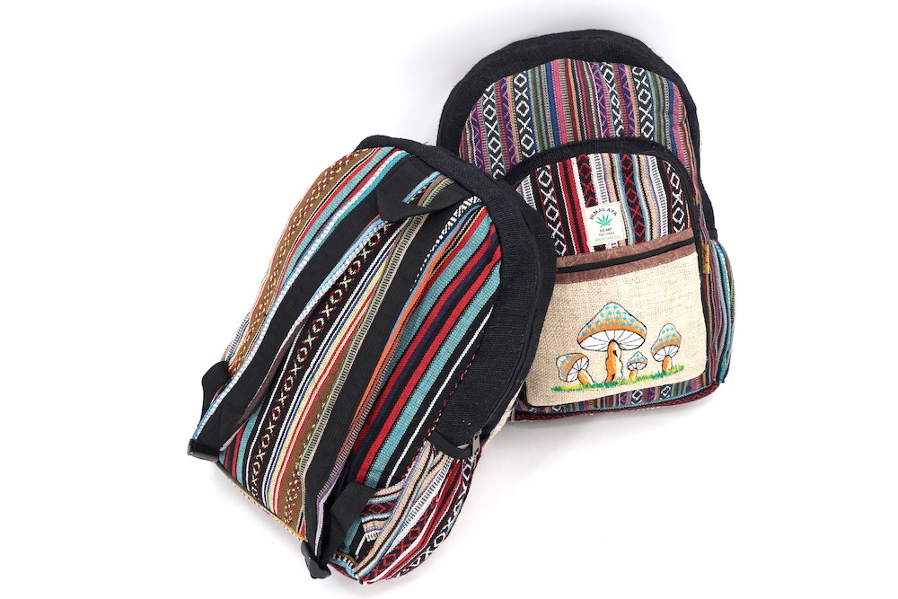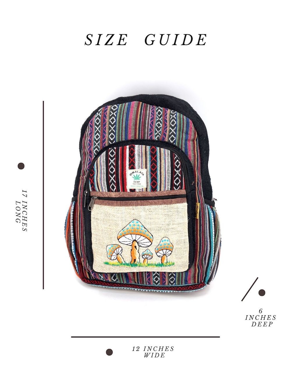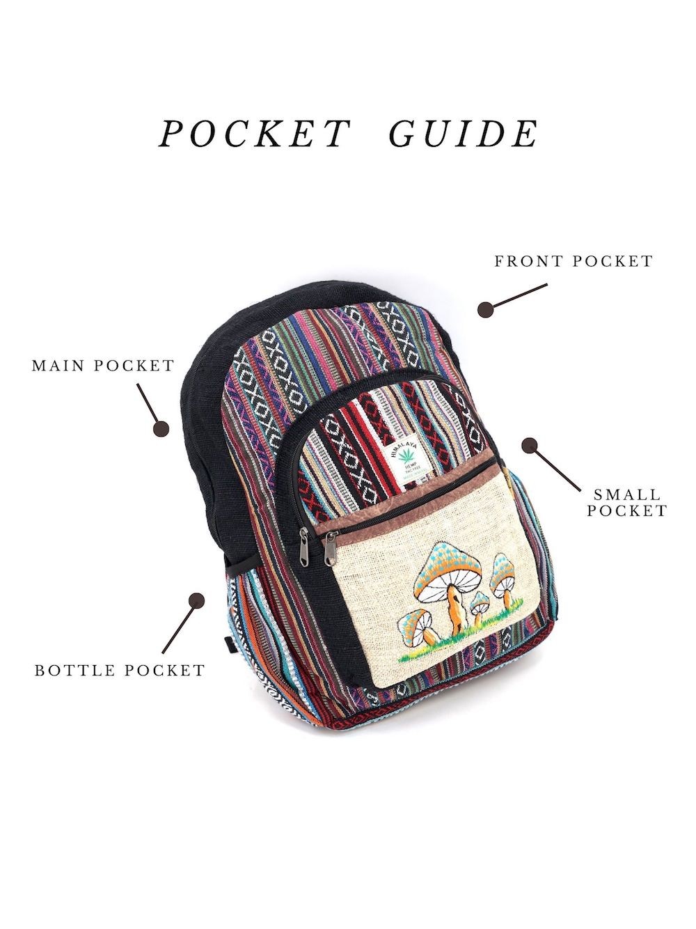 At Himalaya Handmade we are known for creating the modern hemp backpacks that are now available in profusion of design and colors. Our Mini backpack with multicolor Aztec pattern is made from eco-friendly natural hand-woven hemp and cotton fabric and it is beautifully handcrafted in Nepal, they are high quality and this backpack has everything you need. You will not find higher quality anywhere else. All of our bags are sourced from the mountainous regions of Nepal and are all 100% Handmade. This backpack features are it has a unique multi colored pocket. Handcrafted this Backpack Includes, laptop compartment – fits any type and size, 4 separate zippered compartments with 2 pockets, 2 water bottle holders, extremely strong construction, strong original two metal zippers on main compartment, soft padded straps and made from 100% Hemp, the entire bag is extremely strong but also breathable. Color of these bag will not be exact because arrangement of the pattern and these bags are handmade so in color can be slightly different. Pictures color are just example. Every bag is handmade and therefore unique.