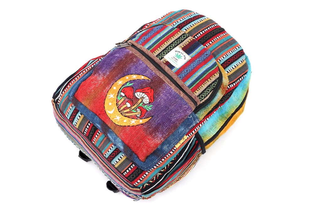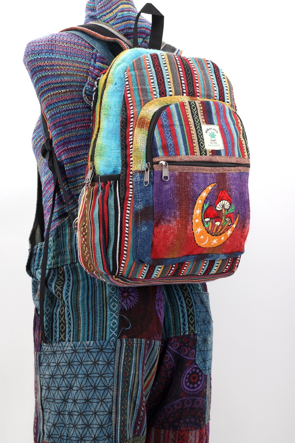 • At Himalaya Handmade we are known for creating the modern hemp backpacks that are now available in profusion of design and colors. Our Mini backpack with multicolor Aztec pattern is made from eco-friendly natural hand-woven hemp and cotton fabric and it is beautifully handcrafted in Nepal, they are high quality and this backpack has everything you need. You will not find higher quality anywhere else. All of our bags are sourced from the mountainous regions of Nepal and are all 100% Handmade. This backpack features are it has a unique multi colored pocket. Handcrafted this Backpack Includes, laptop compartment – fits any type and size, 4 separate zippered compartments with 2 pockets, 2 water bottle holders, extremely strong construction, strong original two metal zippers on main compartment, soft padded straps and made from 100% Hemp, the entire bag is extremely strong but also breathable. Color of these bag will not be exact because arrangement of the pattern and these bags are handmade so in color can be slightly different. Pictures color are just example. Every bag is handmade and therefore unique.