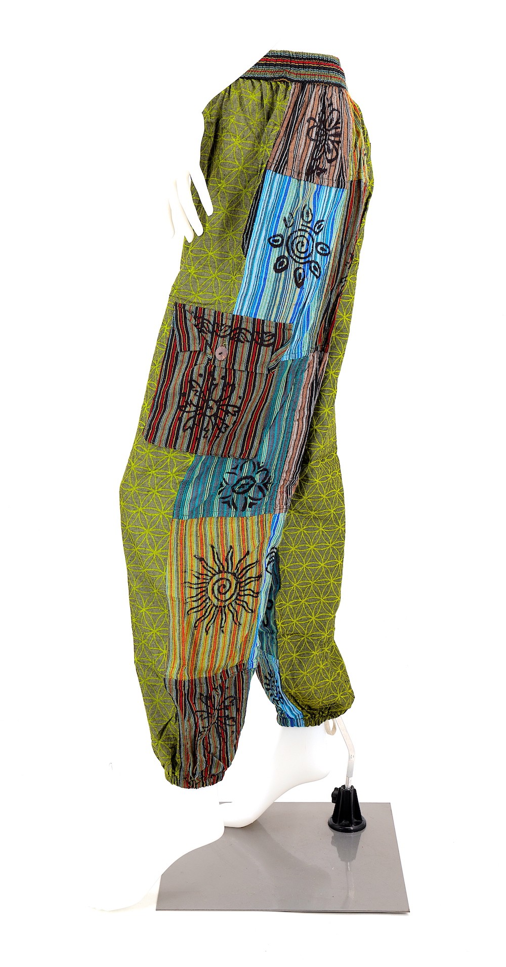 Every clothing item is meticulously handmade, reflecting the care and consideration put into their creation, resulting in unmatched quality. Because our products are handmade, the patchwork colors and patterns on each pair of trousers may vary, making each one unique. The provided image serves as a general representation of the product's appearance.