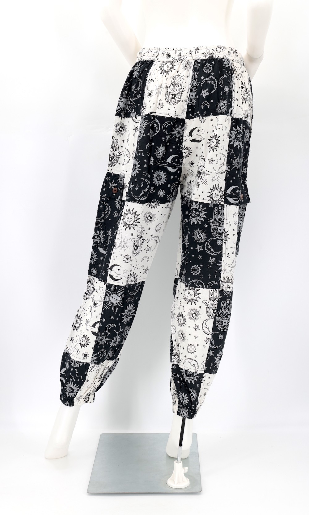 These unique Hippie Celestial Print Patterned Cargo Patchwork Pants are crafted from the finest 100% Natural Handwoven Cotton by some of the most skilled artisans. Elevate your style instantly with these extraordinary and highly fashionable Patchwork Pants that are suitable for almost any occasion, ensuring you always look your best.