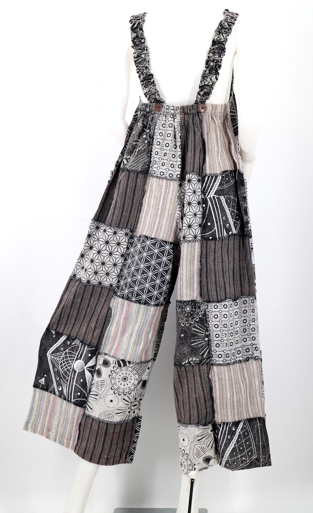These Unique Hippie Wide Leg Geometric Print black and white overlock patchwork overalls are crafted from the finest 100% Natural Handwoven Cotton by some of the most skilled artisans. Elevate your style instantly with these extraordinary and highly fashionable Multicolor Patchwork Block Print Overalls that are suitable for almost any occasion, ensuring you look your best every single time.