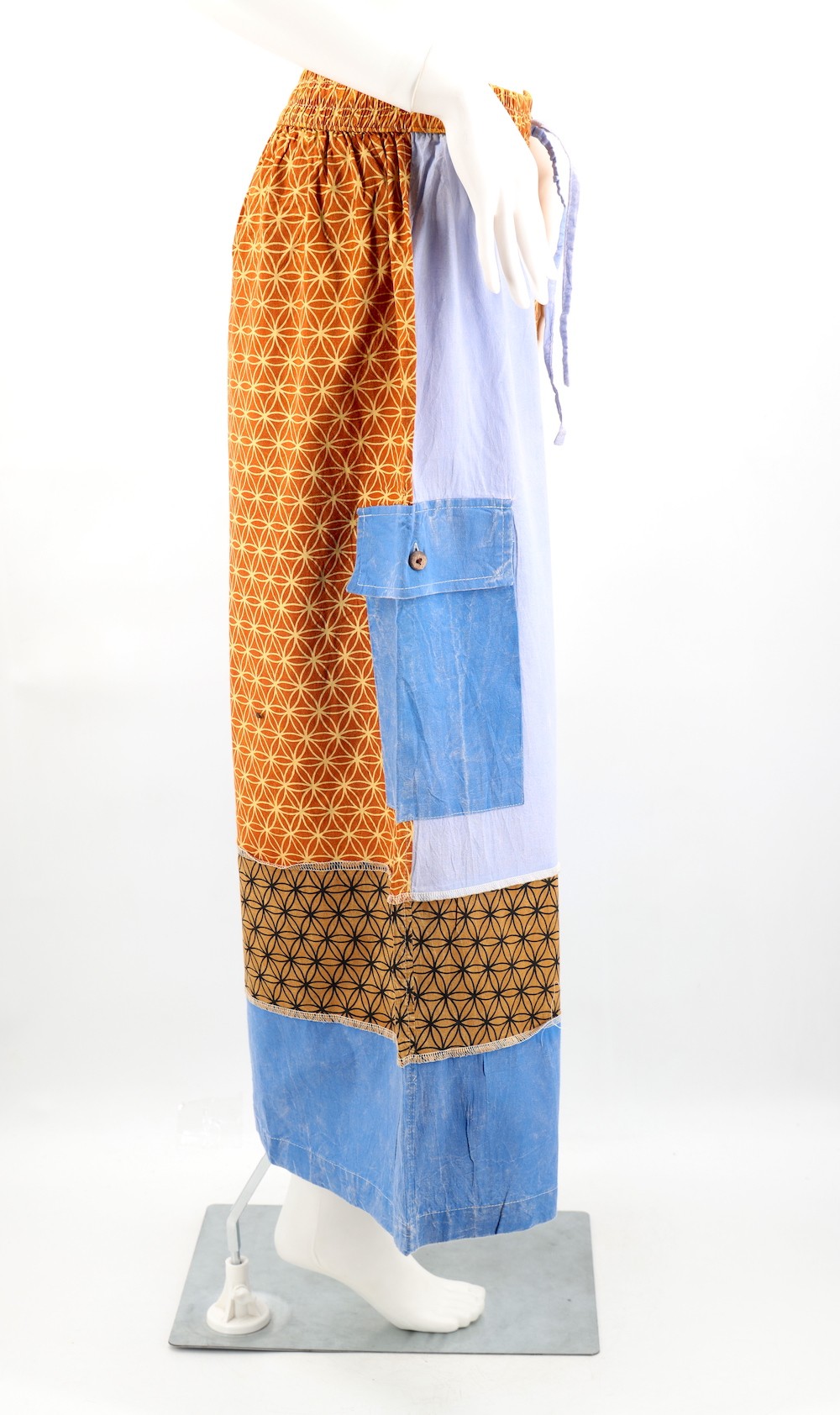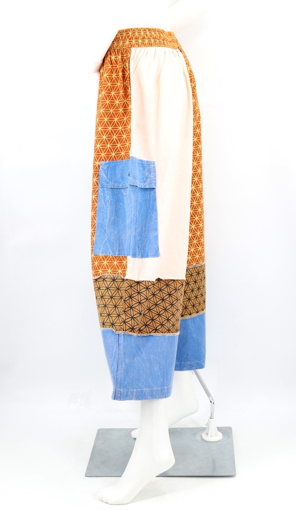 Every clothing item is meticulously handmade, reflecting the care and consideration put into their creation, resulting in unmatched quality. Because our products are handmade, the patchwork colors and patterns on each pair of trousers may vary, making each one unique. The provided image serves as a general representation of the product's appearance.