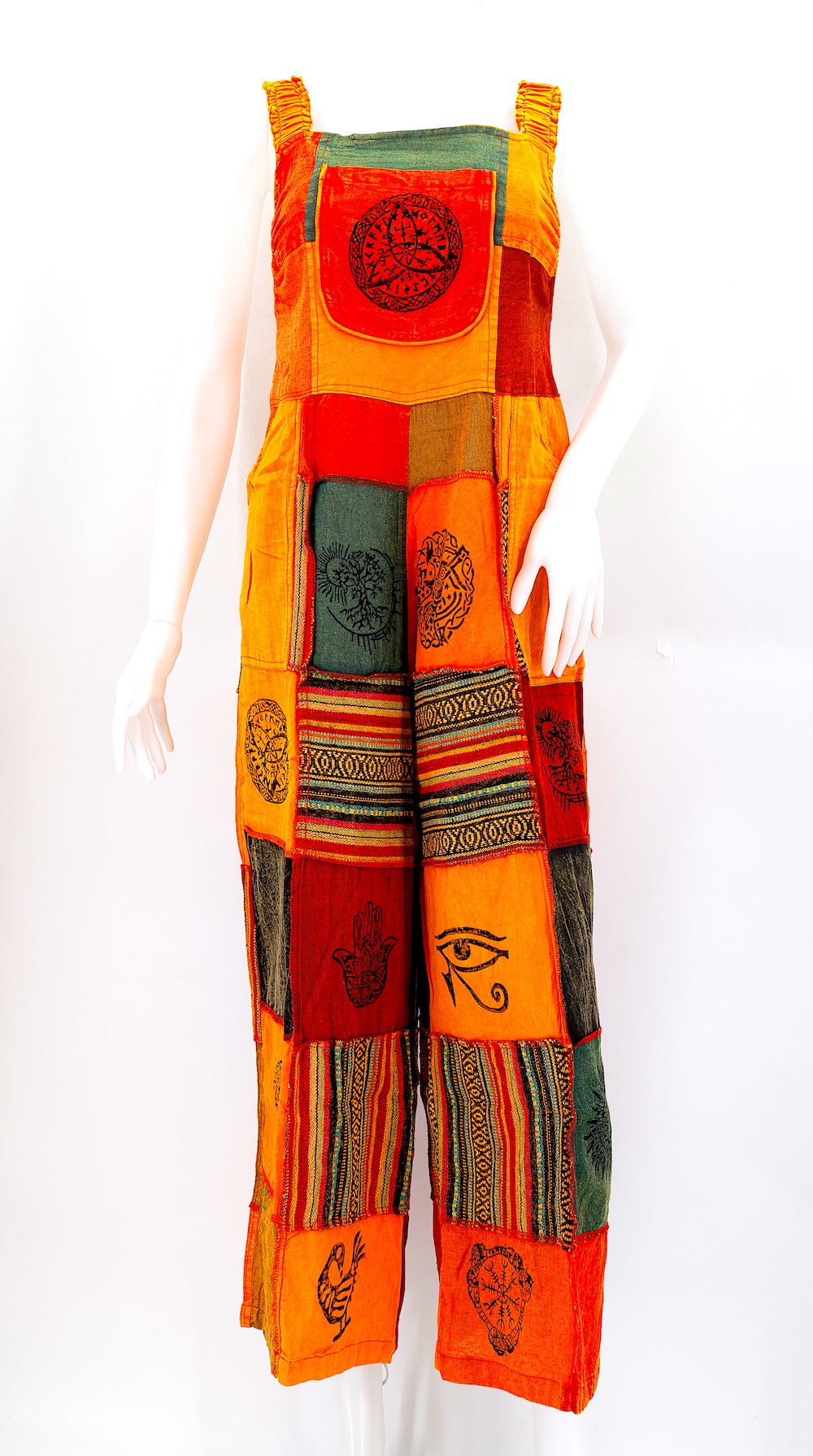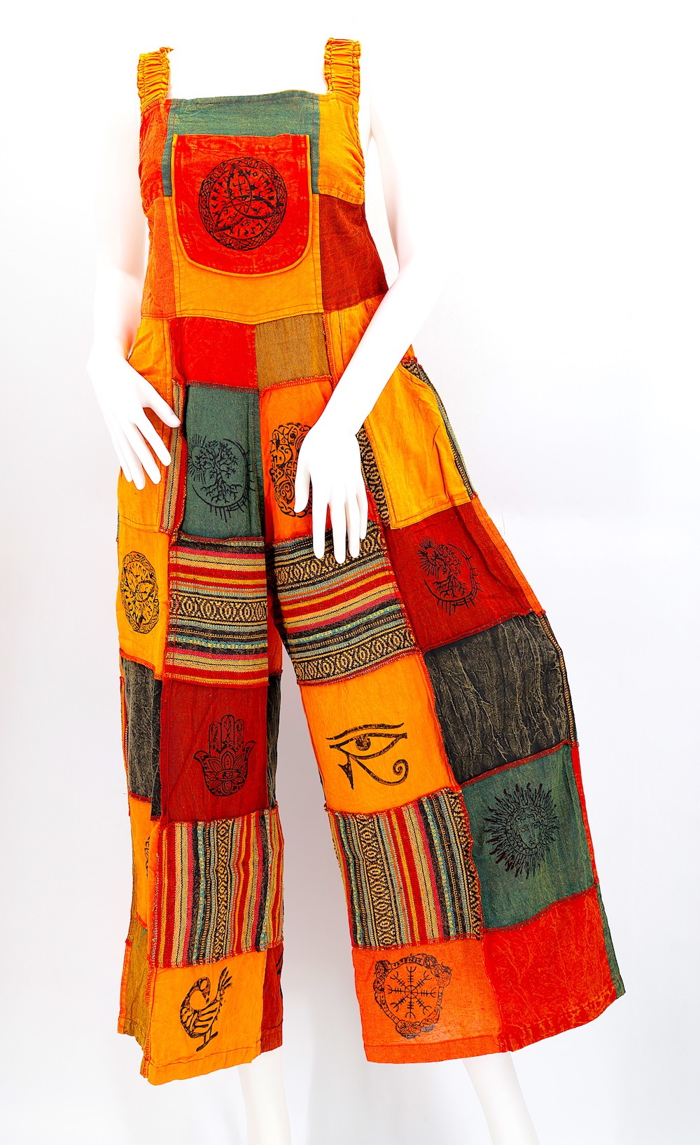 These Unique Hippie Wide Leg Gheri Block Print Multicolor Overlock Patchwork Overalls are crafted from the finest 100% Natural Handwoven Cotton by some of the most skilled artisans. Elevate your style instantly with these extraordinary and highly fashionable Multicolor Patchwork Block Print Overalls that are suitable for almost any occasion, ensuring you look your best every single time.