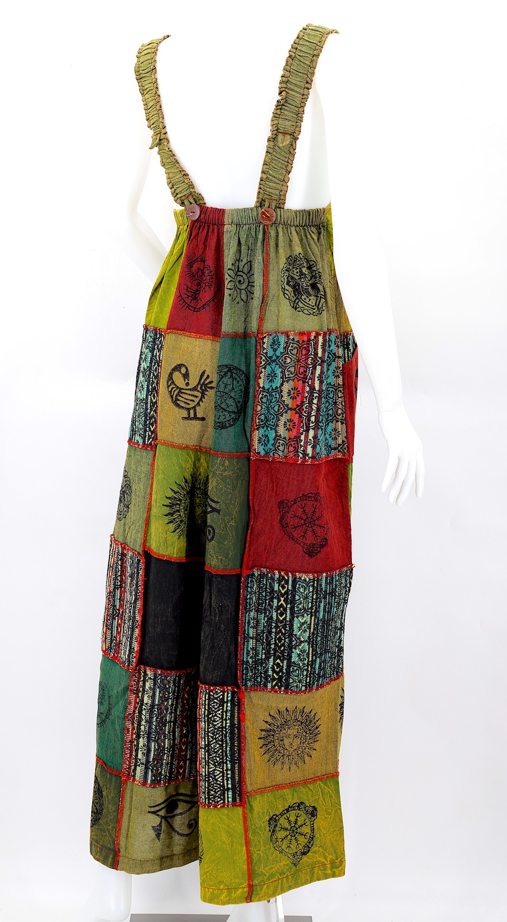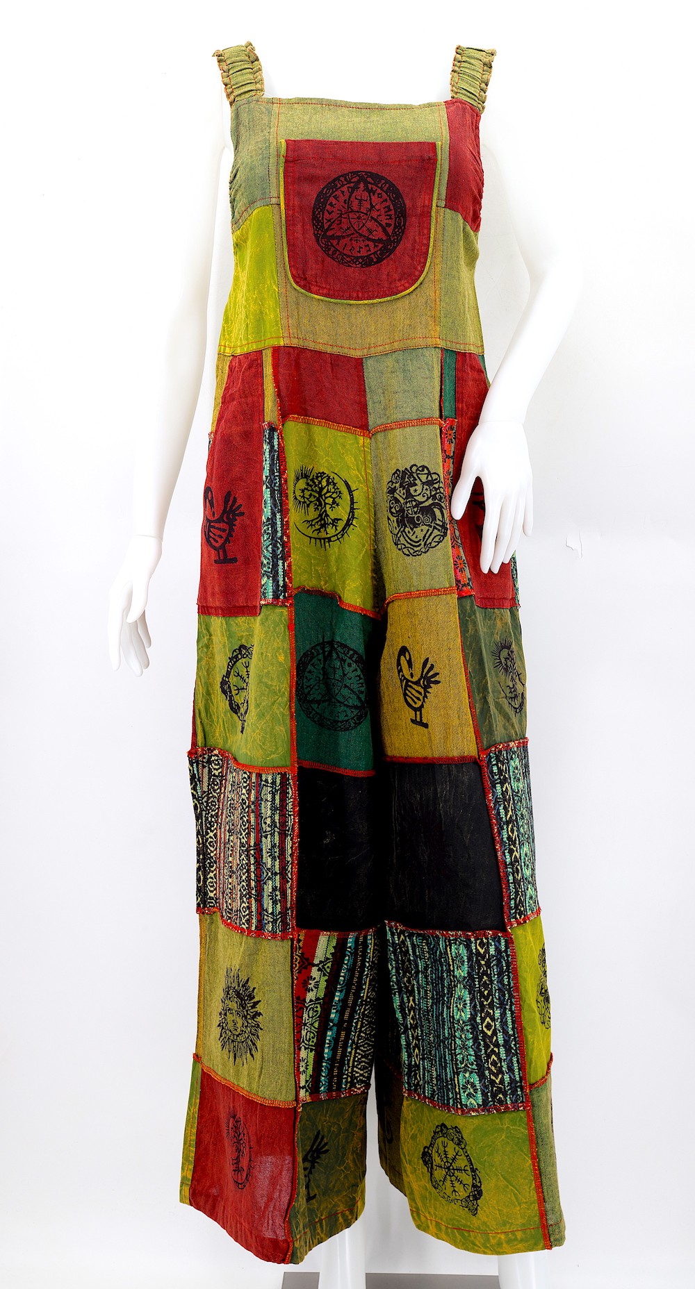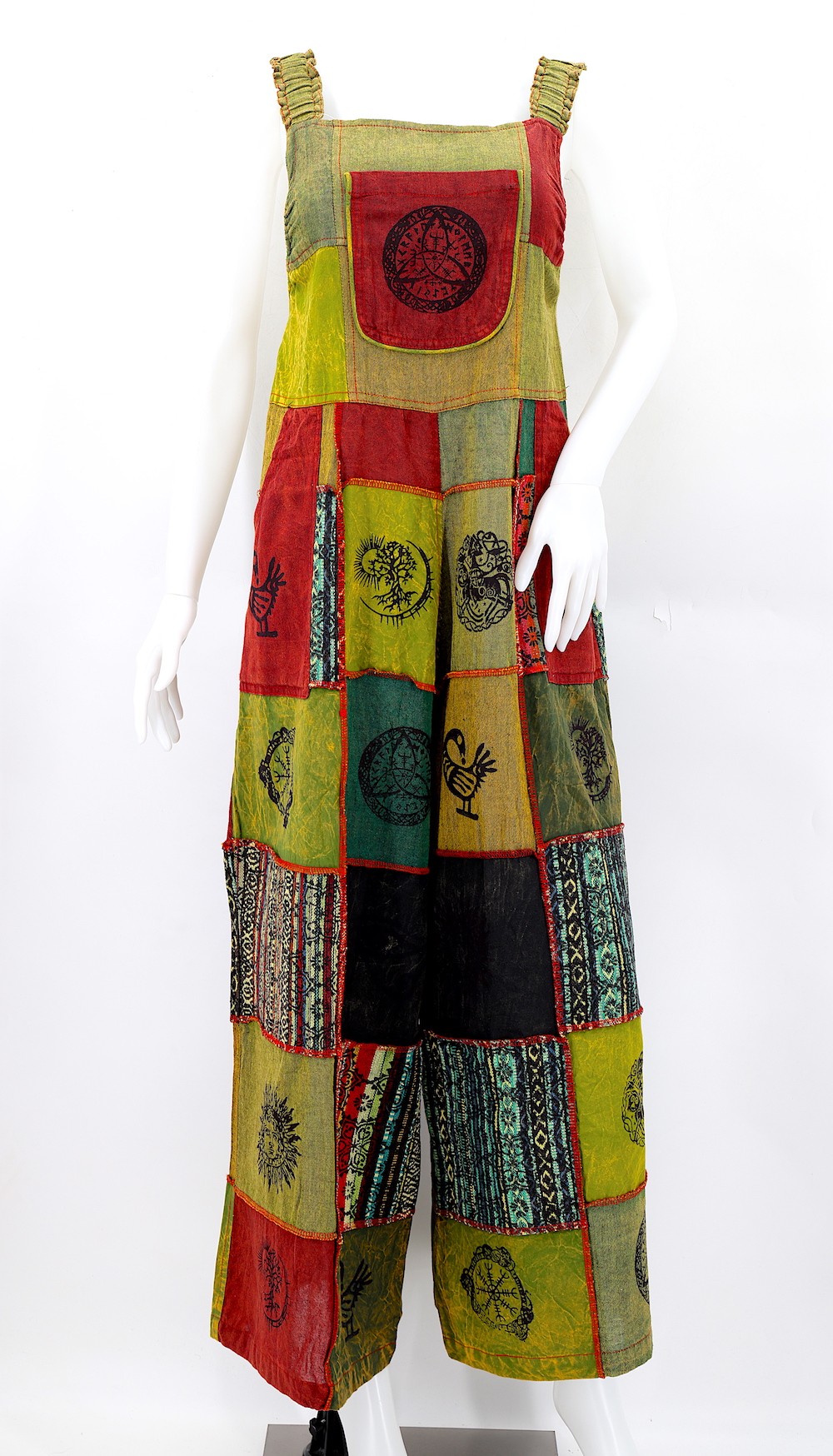These Unique Hippie Wide Leg Gheri Block Print Multicolor Overlock Patchwork Overalls are crafted from the finest 100% Natural Handwoven Cotton by some of the most skilled artisans. Elevate your style instantly with these extraordinary and highly fashionable Multicolor Patchwork Block Print Overalls that are suitable for almost any occasion, ensuring you look your best every single time.