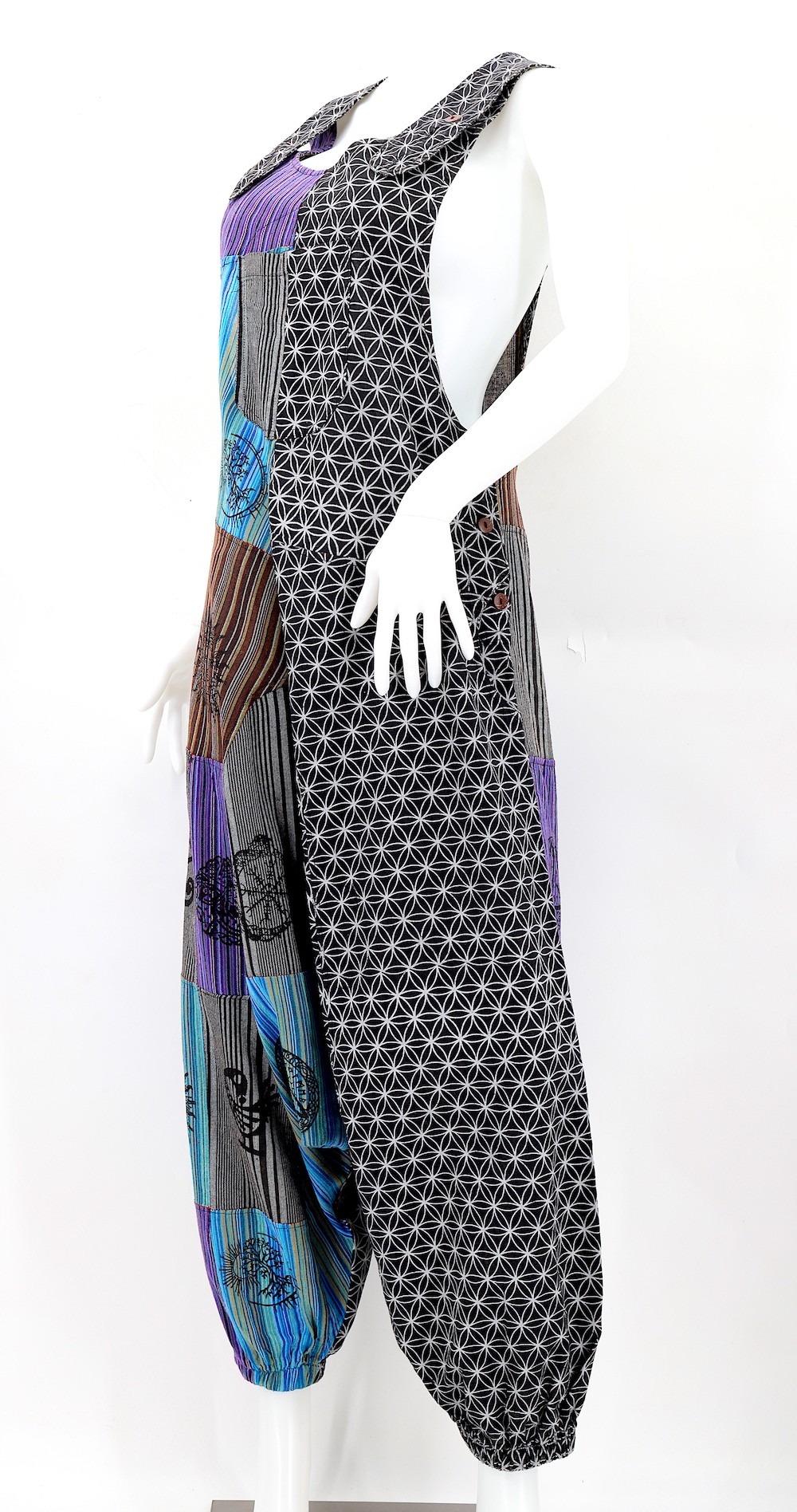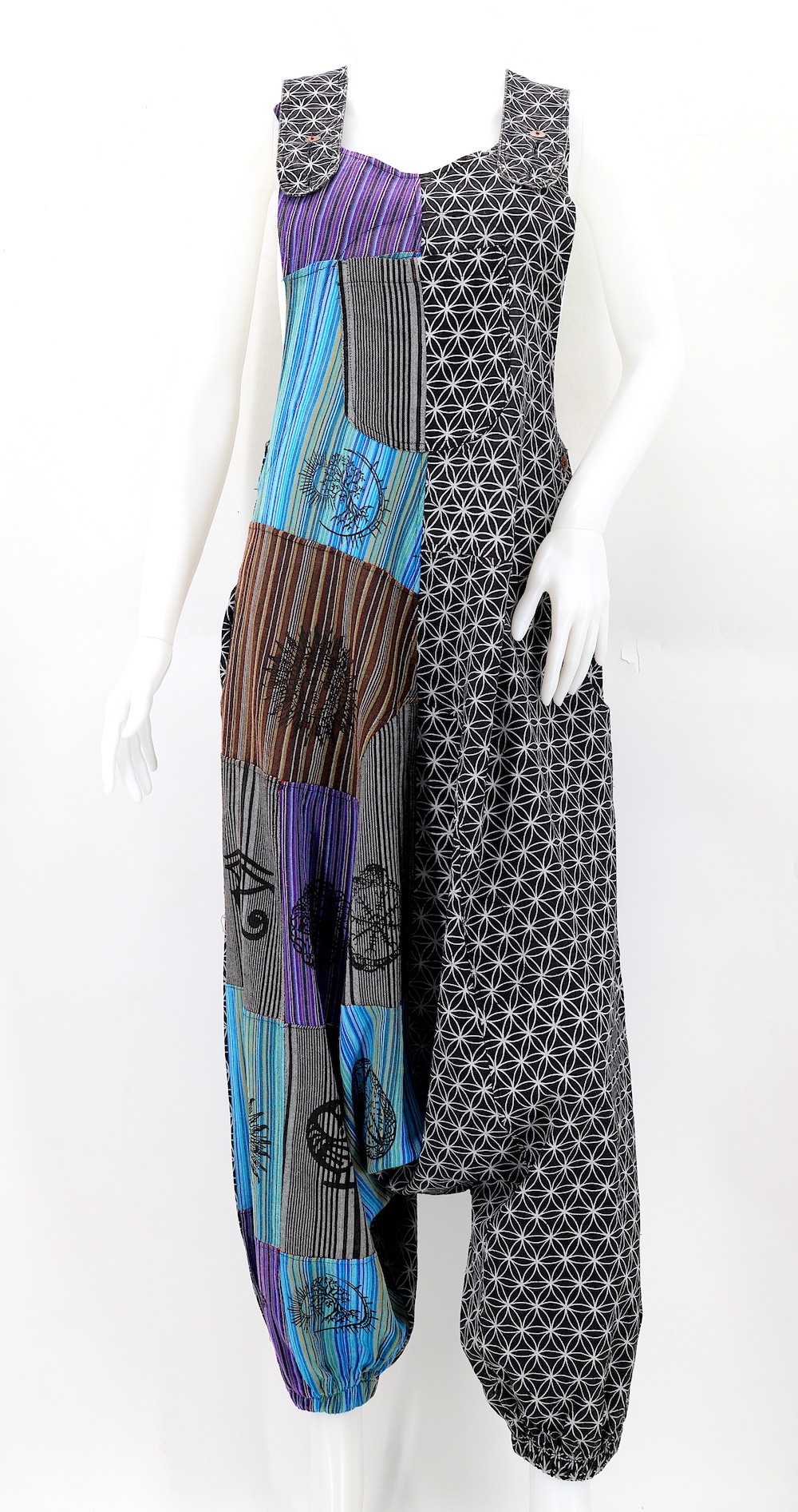 These Unique Hippie Drop Down Flower of Life Patchwork Overalls are crafted from the finest 100% Natural Handwoven Cotton by some of the most skilled artisans. Elevate your style instantly with these extraordinary and highly fashionable Overalls that are suitable for almost any occasion, ensuring you look your best every single time.