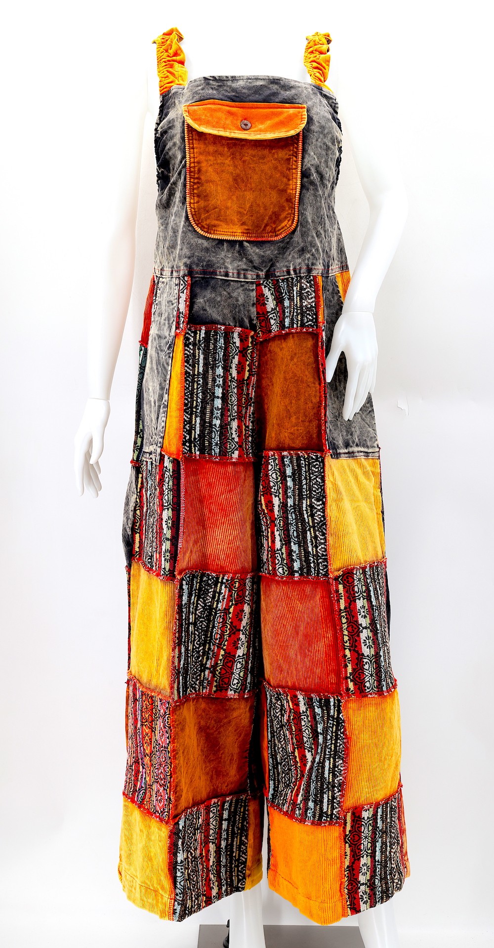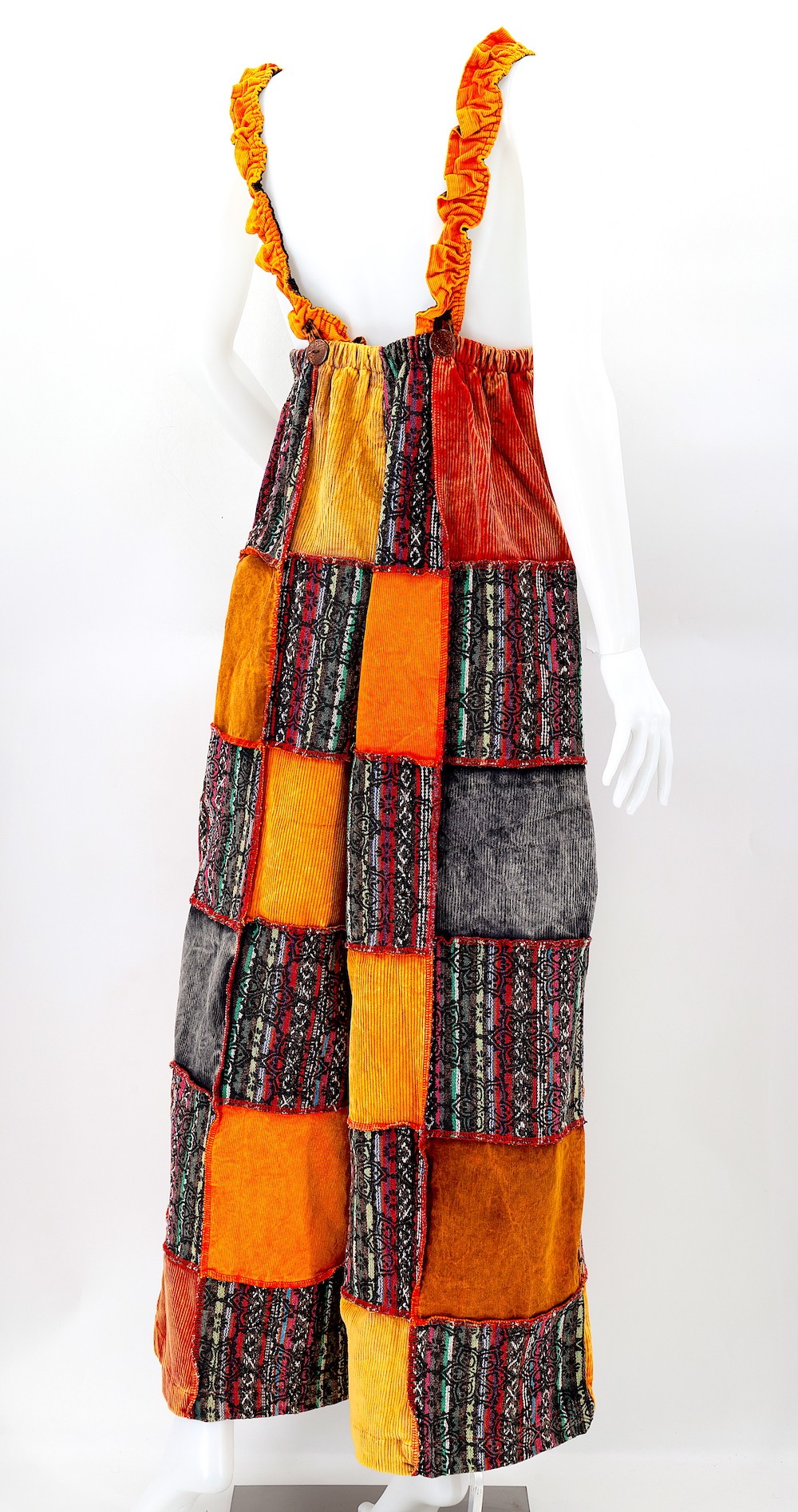 These Unique Hippie Wide Leg Gheri and Corduroy mixed Multicolor Overlock Patchwork Overalls are crafted from the finest 100% Natural Handwoven Cotton by some of the most skilled artisans. Elevate your style instantly with these extraordinary and highly fashionable Multicolor Corduroy Patchwork Overalls that are suitable for almost any occasion, ensuring you look your best every single time.