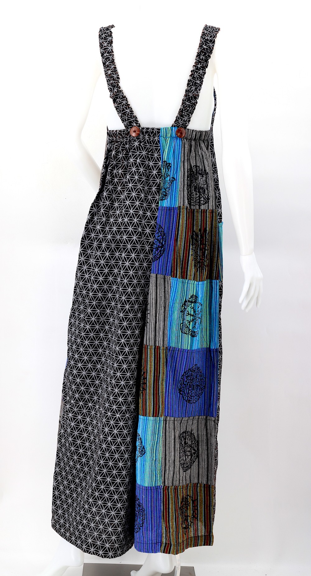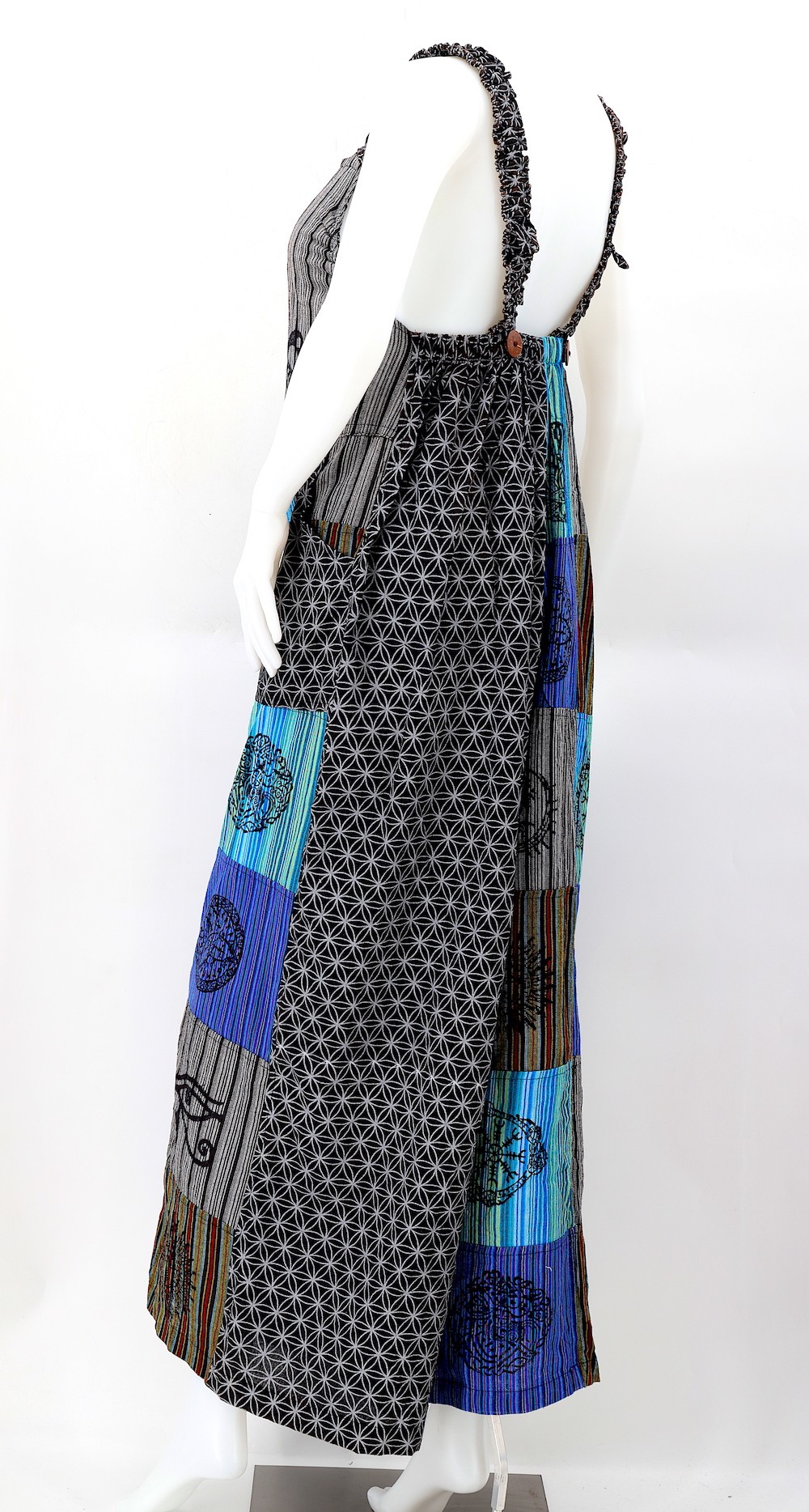 These Unique Hippie Wide Leg Flower of Life Pagan Symbols Block Print Patchwork Overalls are crafted from the finest 100% Natural Handwoven Cotton by some of the most skilled artisans. Elevate your style instantly with these extraordinary and highly fashionable Patchwork Pagan Symbols Block Print Overalls that are suitable for almost any occasion, ensuring you look your best every single time.