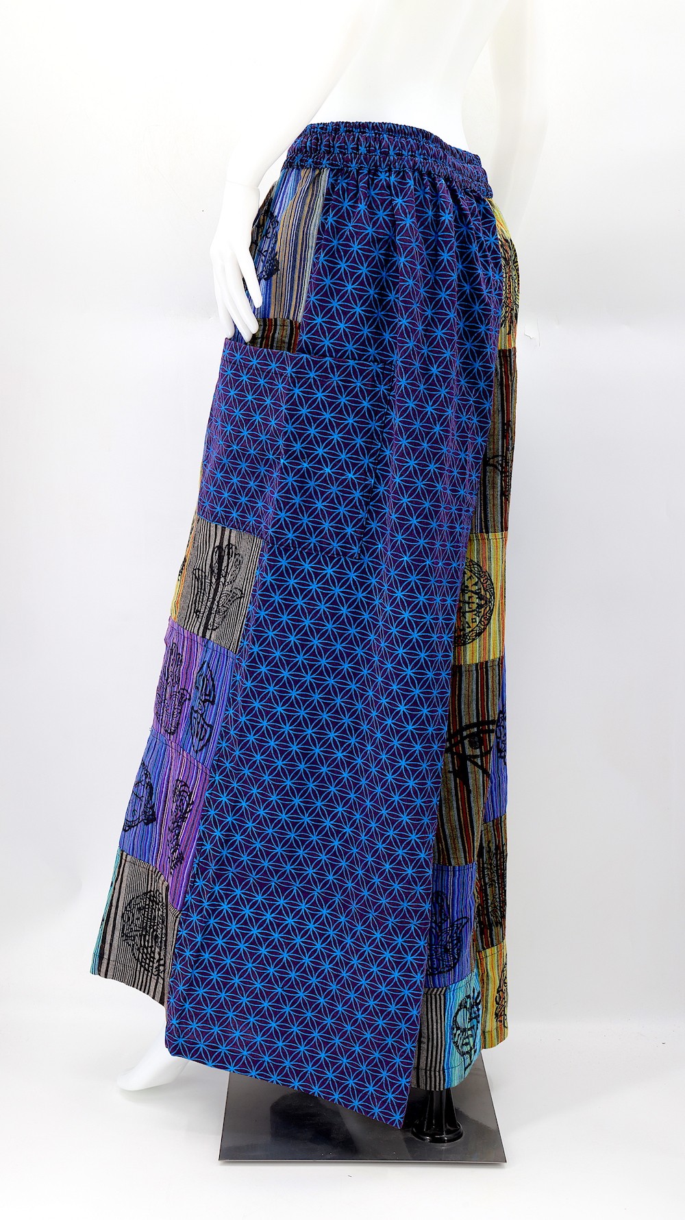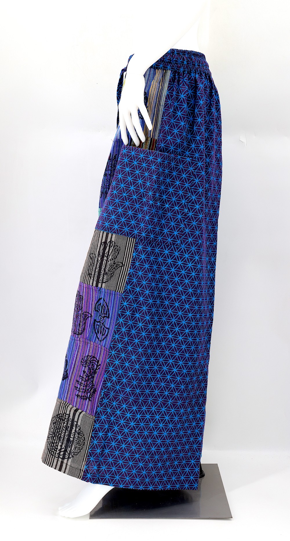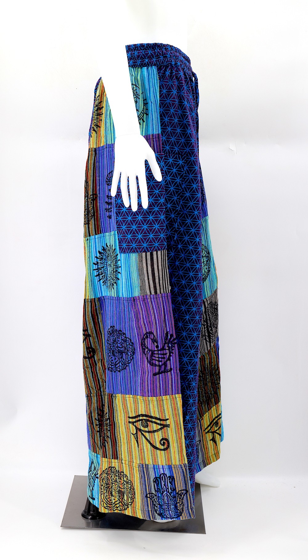 These unique Hippie Flower of Life Designed Pagan Symbols Block Print Patchwork Pants are crafted from the finest 100% Natural Handwoven Cotton by some of the most skilled artisans. Elevate your style instantly with these extraordinary and highly fashionable Wide Leg Patchwork Pants that are suitable for almost any occasion, ensuring you look your best every time.
