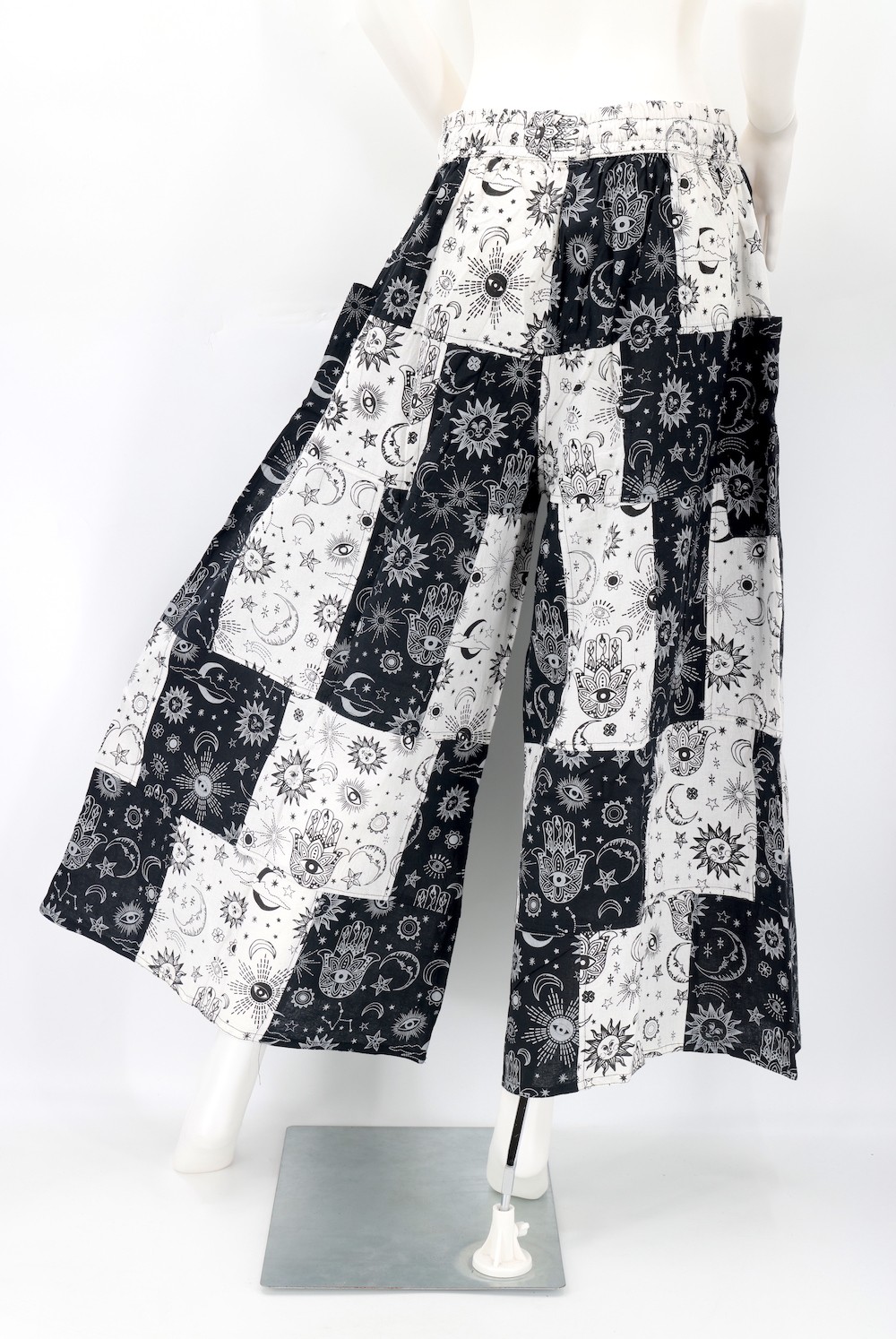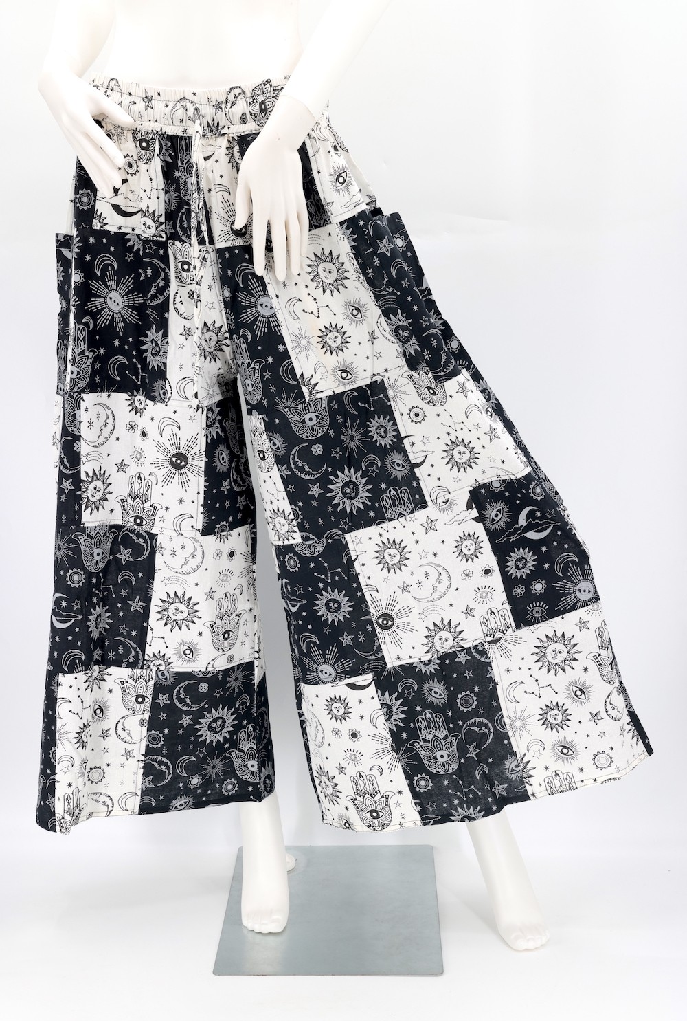 These unique Hippie Celestial Print Patchwork Pants are crafted from the finest 100% Natural Handwoven Cotton by some of the most skilled artisans. Elevate your style instantly with these extraordinary and highly fashionable Patchwork Wide-Leg Pants, which are suitable for almost any occasion and ensure you always look your best.