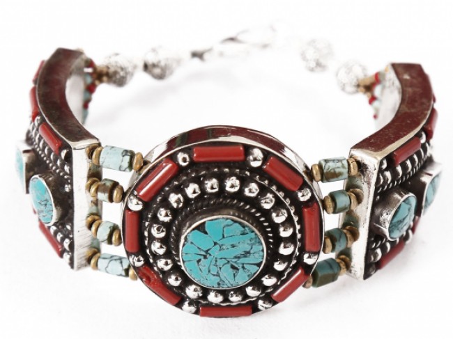 The authentic and beautiful handmade German silver bracelet mixed with turquoise polished stone and garnet polished stone. These bracelets are both whimsical and fashionable. From simple, classic styles to unique cocktail bracelet and these styles of bracelets fit for any occasion. These bracelets are crafted by using only simple hand tools and perfected silver pieces inset with quality gemstones.
