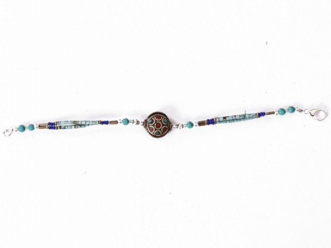The authentic and beautiful handmade German silver bracelet mixed with turquoise polished stone and garnet polished stone. These bracelets are both whimsical and fashionable. From simple, classic styles to unique cocktail bracelet and these styles of bracelets fit for any occasion. These bracelets are crafted by using only simple hand tools and perfected silver pieces inset with quality gemstones.