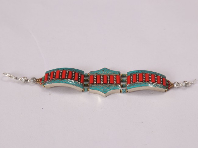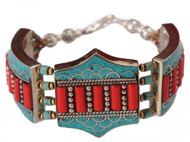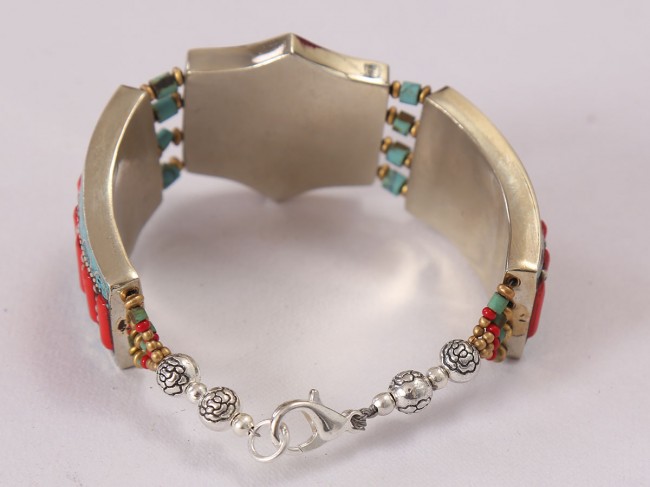 The authentic and beautiful handmade German silver bracelet mixed with turquoise polished stone and garnet polished stone. These bracelets are both whimsical and fashionable. From simple, classic styles to unique cocktail bracelet and these styles of bracelets fit for any occasion. These bracelets are crafted by using only simple hand tools and perfected silver pieces inset with quality gemstones.