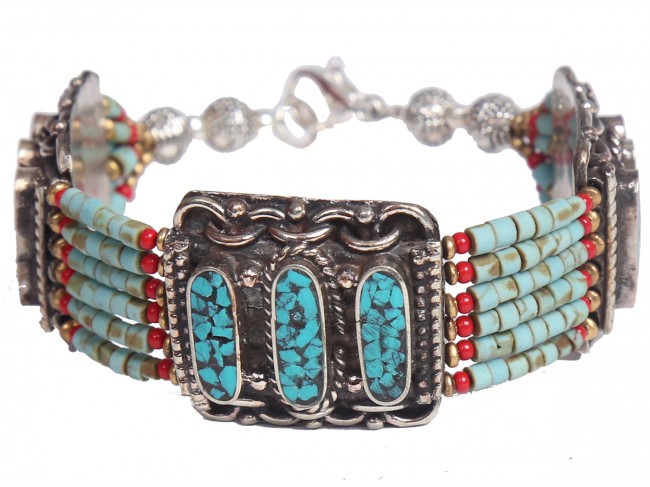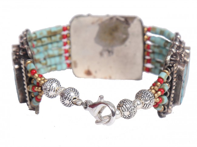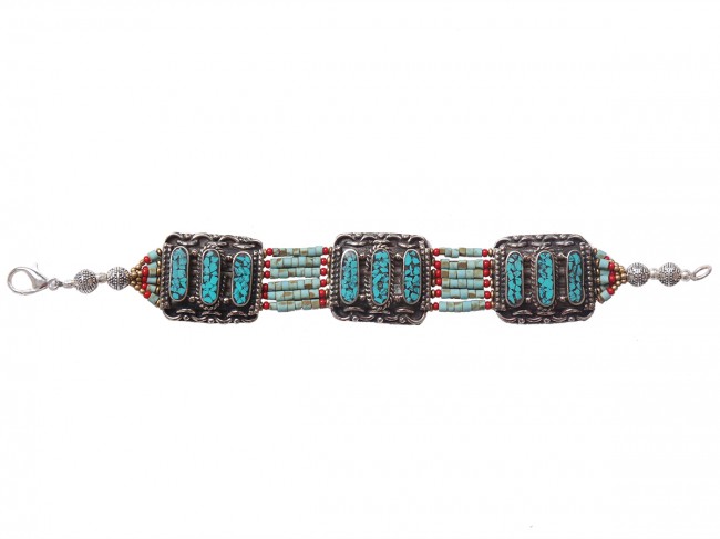 The authentic and beautiful handmade German silver bracelet mixed with turquoise polished stone and garnet polished stone. These bracelets are both whimsical and fashionable. From simple, classic styles to unique cocktail bracelet and these styles of bracelets fit for any occasion. These bracelets are crafted by using only simple hand tools and perfected silver pieces inset with quality gemstones.