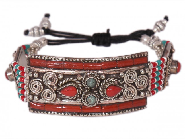 The authentic and beautiful handmade German silver bracelet mixed with turquoise polished stone and garnet polished stone. These bracelets are both whimsical and fashionable. From simple, classic styles to unique cocktail bracelet and these styles of bracelets fit for any occasion. These bracelets are crafted by using only simple hand tools and perfected silver pieces inset with quality gemstones.