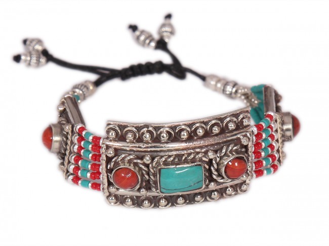 The authentic and beautiful handmade German silver bracelet mixed with turquoise polished stone and garnet polished stone. These bracelets are both whimsical and fashionable. From simple, classic styles to unique cocktail bracelet and these styles of bracelets fit for any occasion. These bracelets are crafted by using only simple hand tools and perfected silver pieces inset with quality gemstones.
