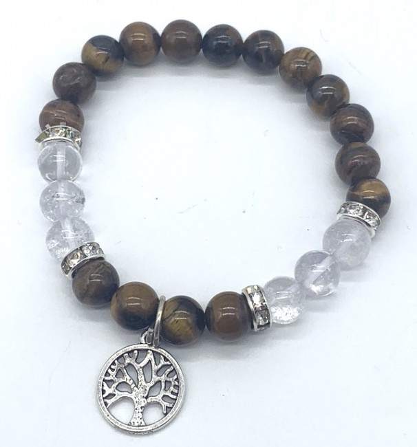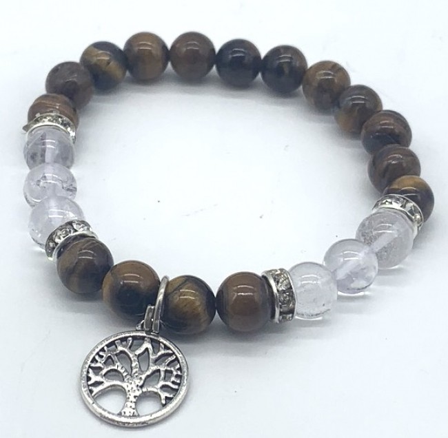 8 mm Natural Tiger Eye with clear quartz and tree of life Bracelet Elastic Yoga Gemstones Healing Energy Men & Women Stretch Bracelet