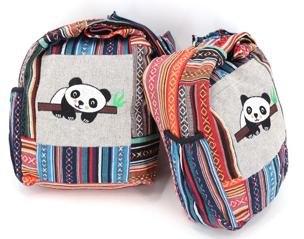 A versatile and beautiful Panda embroidery colorful 100% Natural Handwoven Cotton Fabric stitched by talented artisans in Himalaya range of Nepal. Purchasing means supporting underprivileged Nepalese communities who help make these bags.