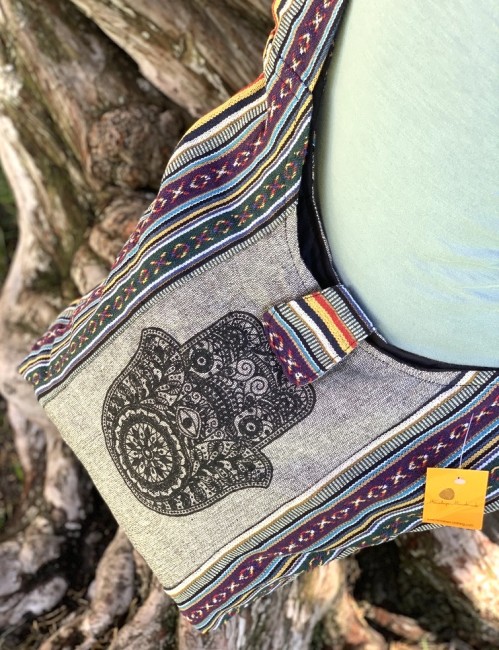 Double Stitched with the highest quality Handwoven Cotton and double zipper with shoulder straps 24-inch one size fits all. Dimensions: 14” x 11 x 4" inch / 36 x 28 x 10 cm
