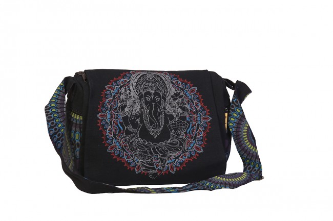 This beautiful Ganesh printed ladies cotton bags are handmade in Nepal. This beautiful ladies bags features are it has one outside pocket, 2 small pocket in the side & a large main compartment with zippered, it has also secrete pocket inside the main compartment and it is specially design for ladies. This cotton bag is extraordinary and fashionable. It is fair trade product.
