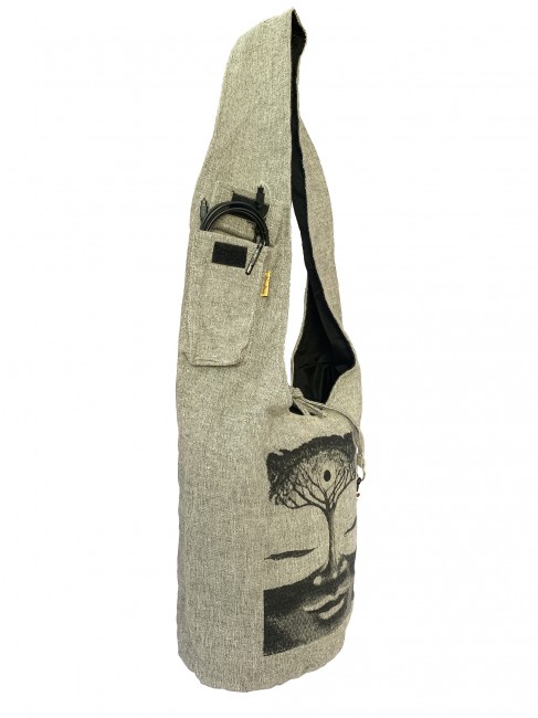 Pure 100% BTC Heavy duty vintage handwoven cotton Tree of Life Buddha (Boddhi Tree) print Yoga bag is handmade in Nepal. This Yoga bag has hidden pocket with zipper closuer inside the main compartment and the dimention of teh hidden pocket 7'' X 6'', The main compartment with zipper closuer also it has string with key ring on it which gives extra looks and also it has pocket on teh strap with flap cover and with velcor clouser where you can keep accessories. It is supremely versatile and fashionable. This bag is suitable for carrying passport, mobile phone and mini iPad and other nesecities. It is fair trade product. Could be hand washed or machine washed in cold water.