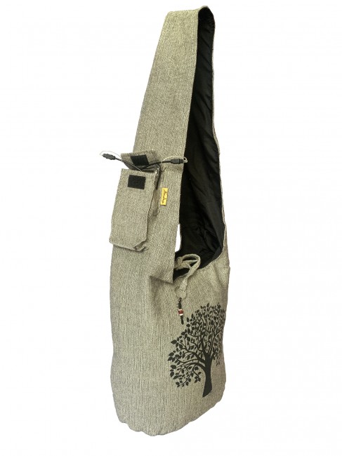 Pure 100% BTC Heavy duty vintage handwoven cotton Tree of Life print Yoga bag is handmade in Nepal. This Yoga bag has hidden pocket with zipper closuer inside the main compartment and the dimention of teh hidden pocket 7'' X 6'', The main compartment with zipper closuer also it has string with key ring on it which gives extra looks and also it has pocket on teh strap with flap cover and with velcor clouser where you can keep accessories. It is supremely versatile and fashionable. This bag is suitable for carrying passport, mobile phone and mini iPad and other nesecities. It is fair trade product. Could be hand washed or machine washed in cold water.