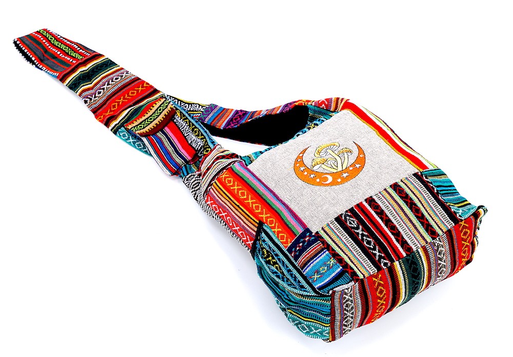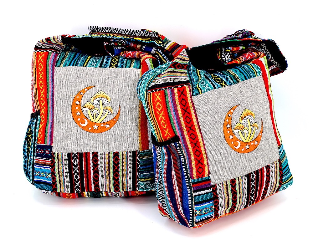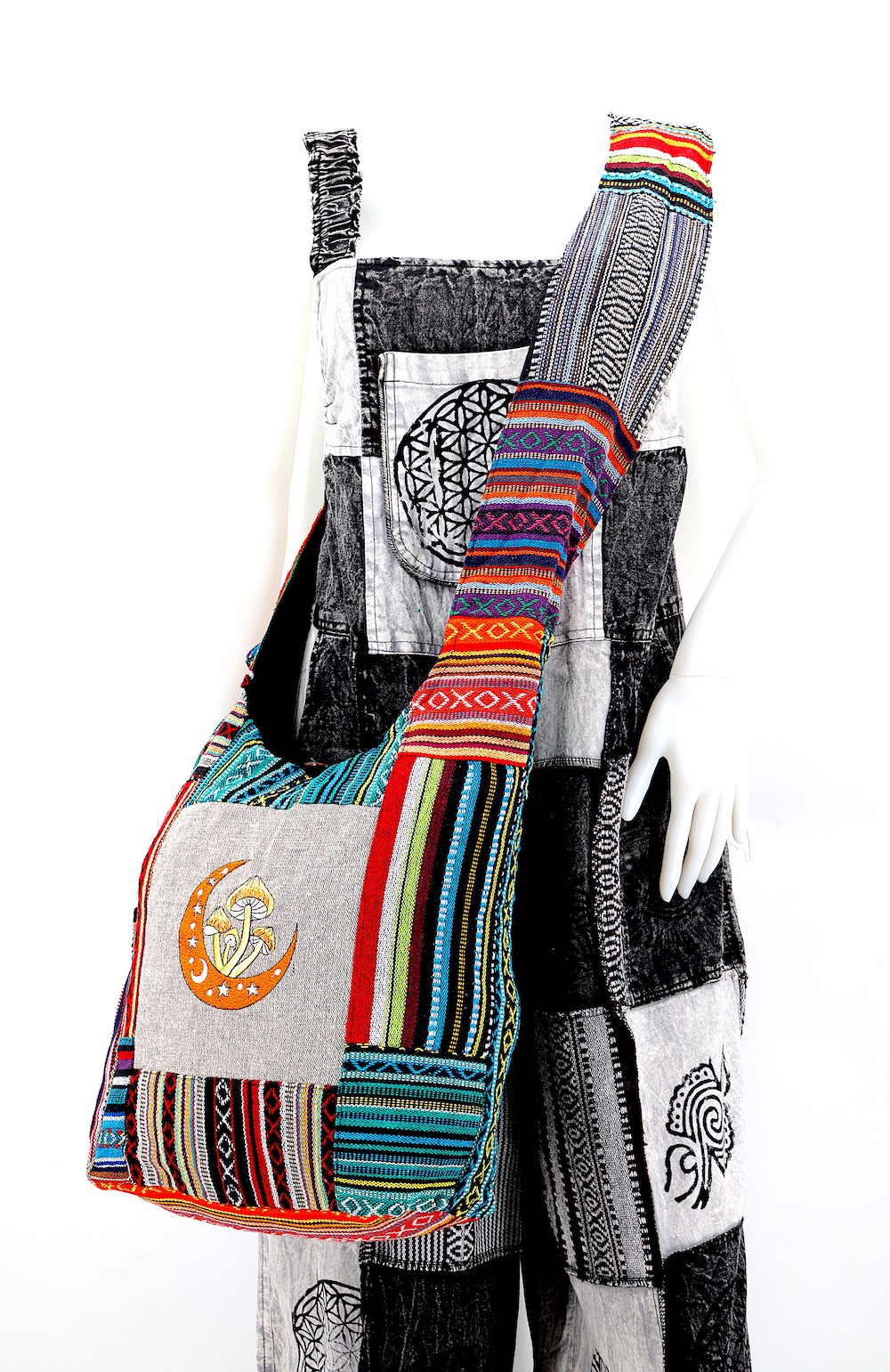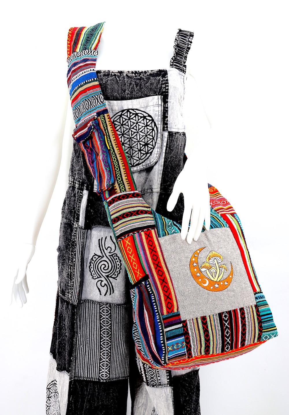 A versatile and beautiful Moon Mushroom Embroidered Handmade Cotton Crossbody Bag made with 100 percent natural handwoven cotton. Stitched and assembled by the most talented artisans in Nepal.