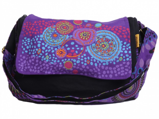 This beautiful Mandala printed 100% pure cotton bags are handmade in Nepal. This beautiful shoulder bag features are it has four compartment with zippers, it has secrete pocket with zipper in side the main compartment, one pocket on the front one pocket on the back and it has a long adjustable strap which you can clutch the bag across your body. This cotton bag is extraordinary and fashionable. And it is fair trade product.