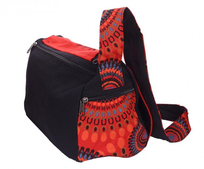 This beautiful Om printed ladies cotton bags are handmade in Nepal. This beautiful ladies bags features are it has one outside pocket, 2 small pocket in the side & a large main compartment with zippered, it has also secrete pocket inside the main compartment and it is specially design for ladies. This cotton bag is extraordinary and fashionable. It is fair trade product.