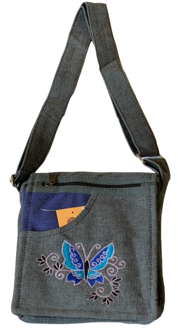 This beautiful Butterfly embroidered 100% pure cotton passport bags are handmade in Nepal. This beautiful passport bag features are it has one pocket in the front & one pocket in the back, it has two compartment, a large main compartment with zippered pocket inside and it has a long adjustable strap which you can clutch the bag across your body. This cotton passport bag is extraordinary and fashionable. This passport bag is suitable for carrying document and Ipad.