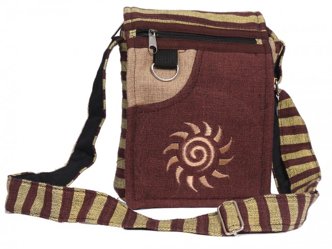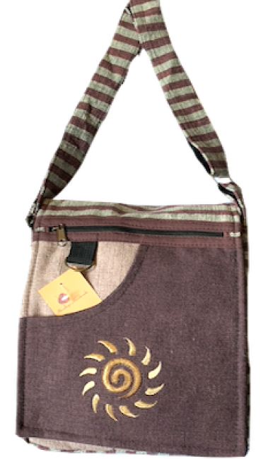 This beautiful Sun embroidered 100% pure cotton passport bags are handmade in Nepal. This beautiful passport bag features are it has one pocket in the front & one pocket in the back, it has two compartment, a large main compartment with zippered pocket inside and it has a long adjustable strap which you can clutch the bag across your body. This cotton passport bag is extraordinary and fashionable. This passport bag is suitable for carrying document and Ipad.