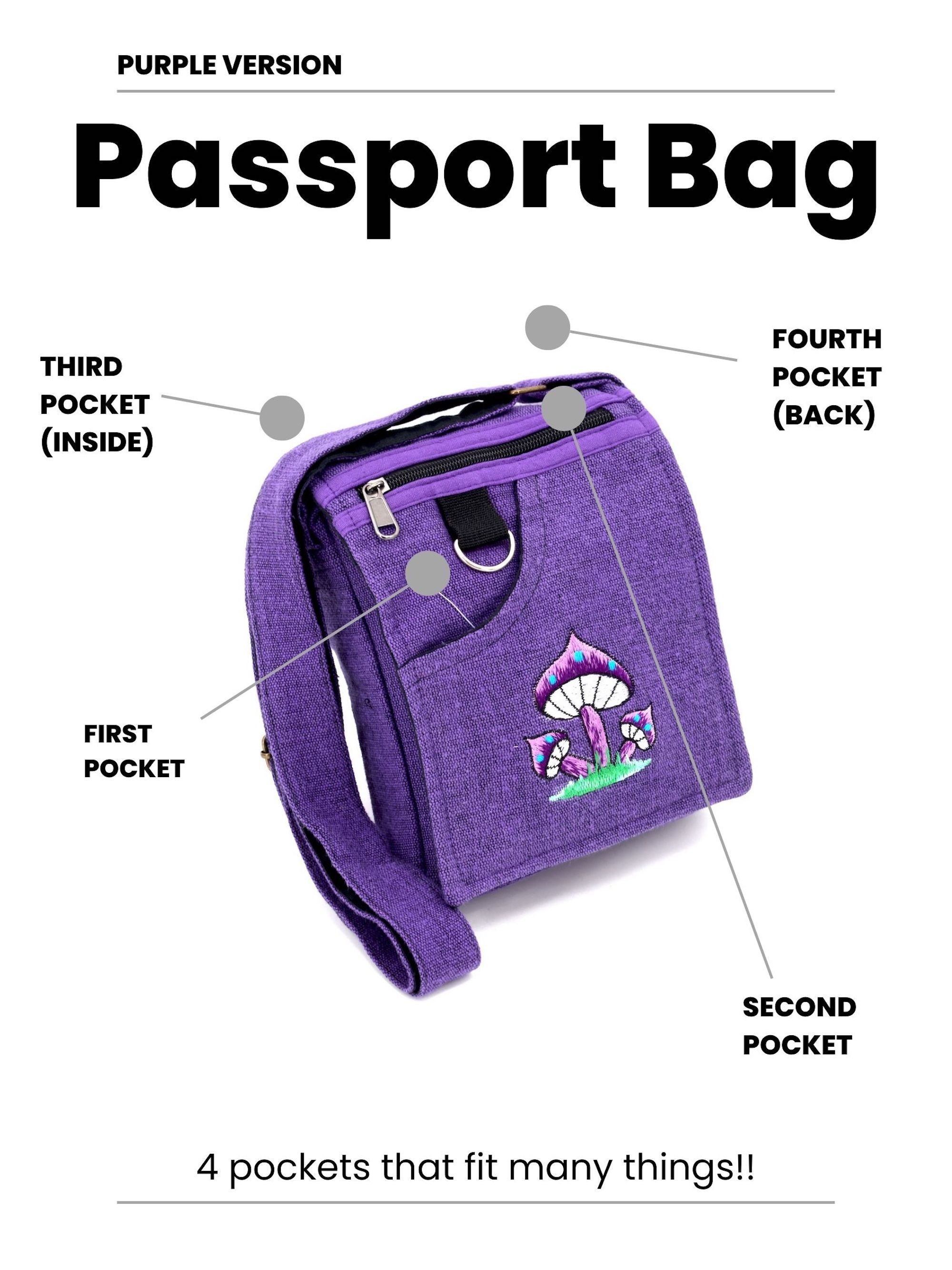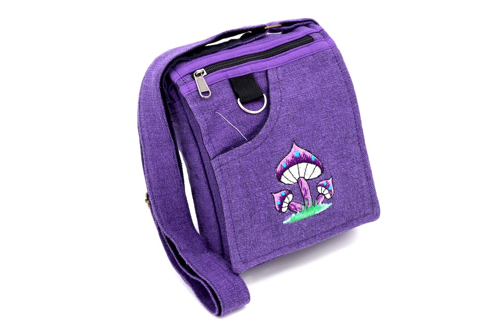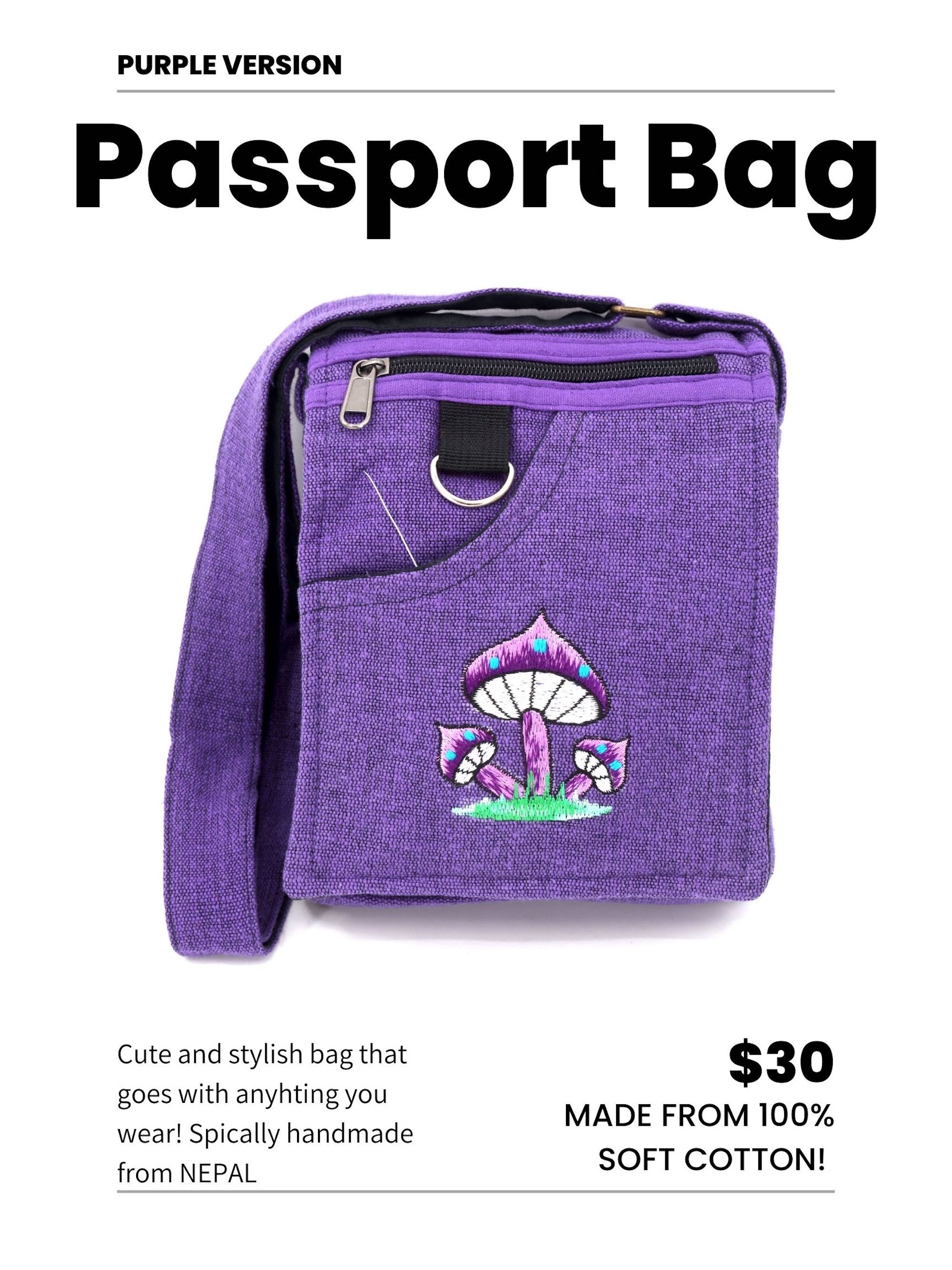 The beautiful Hand-Woven Cotton Travel bag is hand made in Nepal with pure 100% organic Himalaya Cotton. This modern Mushroom Embroidery Cotton passport bag is supremely versatile and fashionable. This bag features are it has two compartments with zippers and it has adjustable strap with outside two pockets in the front and in the main pocket above with a zipper. It is a fair trade made product.