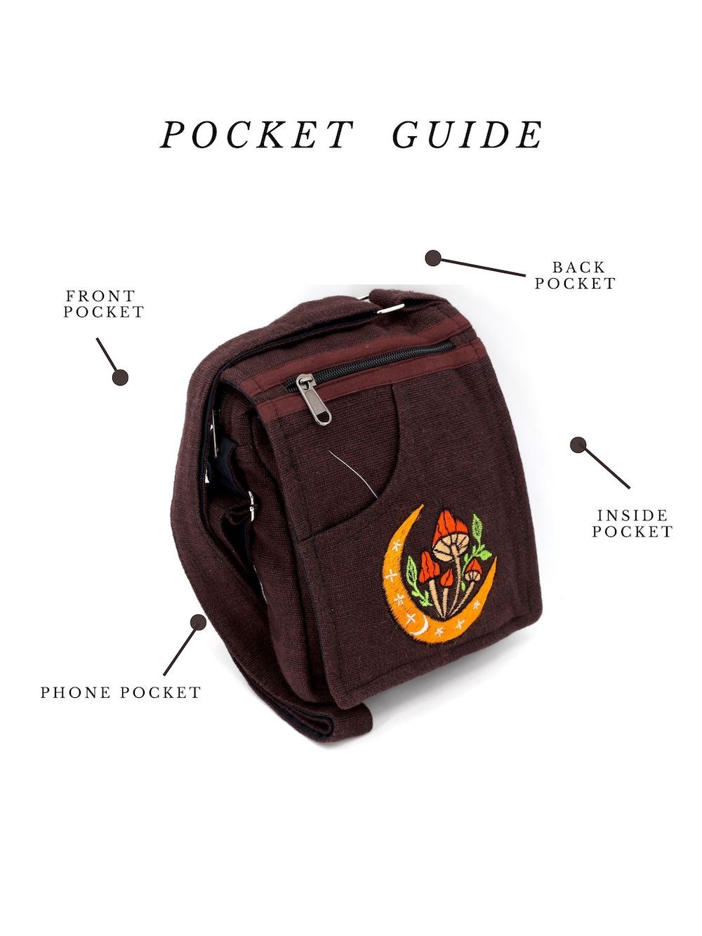 A versatile and beautiful mushroom design hand embroidered 100% Natural THC Free Himalaya Hand woven Cotton Fabric stitched by talented artisans in Himalaya Range of Nepal. Support underprivileged Nepalese communities with your purchase. Hand wash or Machine wash separately in cold water.