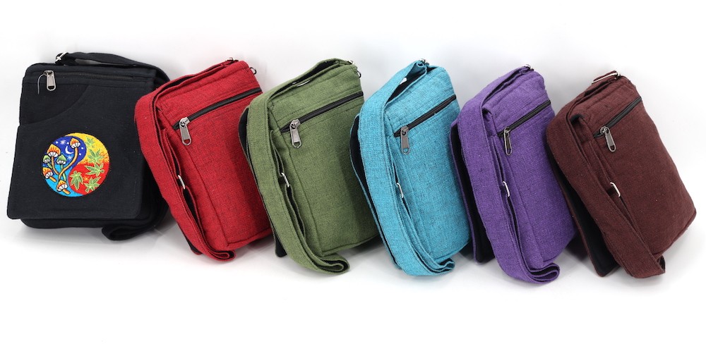 The beautiful Hand-Woven Cotton Travel bag is hand made in Nepal with pure 100% organic Himalaya Cotton. This modern Mushroom Embroidery Cotton passport bag is supremely versatile and fashionable. This bag features are it has two compartments with zippers and it has adjustable strap with outside two pockets in the front and in the main pocket above with a zipper. It is a fair trade made product.