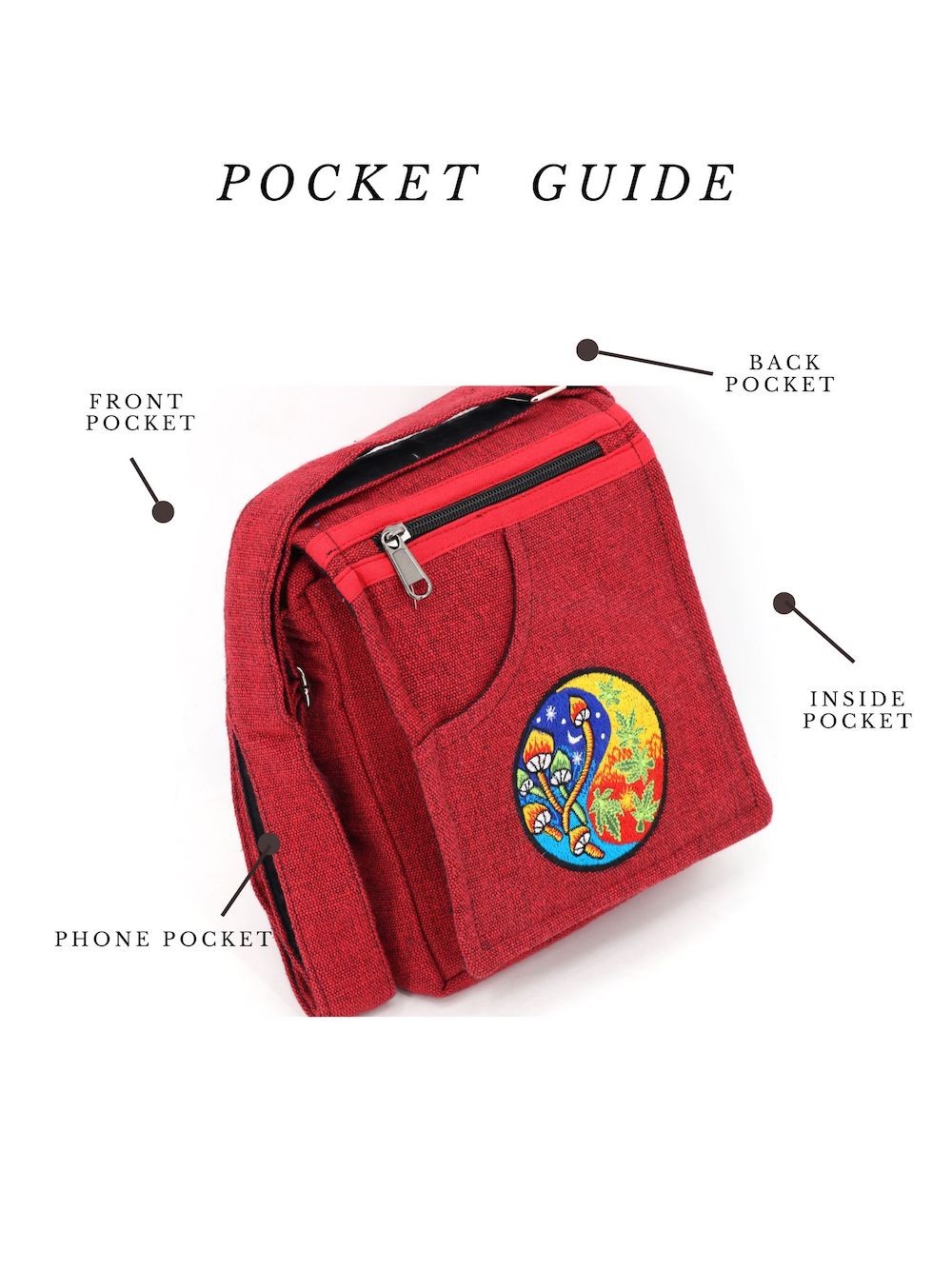 The beautiful Hand-Woven Cotton Travel bag is hand made in Nepal with pure 100% organic Himalaya Cotton. This modern Mushroom Embroidery Cotton passport bag is supremely versatile and fashionable. This bag features are it has two compartments with zippers and it has adjustable strap with outside two pockets in the front and in the main pocket above with a zipper. It is a fair trade made product.