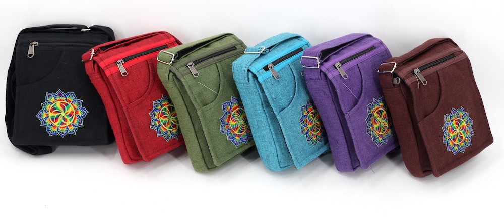 The beautiful Hand-Woven Cotton Travel bag is hand made in Nepal with pure 100% organic Himalaya Cotton. This modern Mushroom Embroidery Cotton passport bag is supremely versatile and fashionable. This bag features are it has two compartments with zippers and it has adjustable strap with outside two pockets in the front and in the main pocket above with a zipper. It is a fair trade made product.