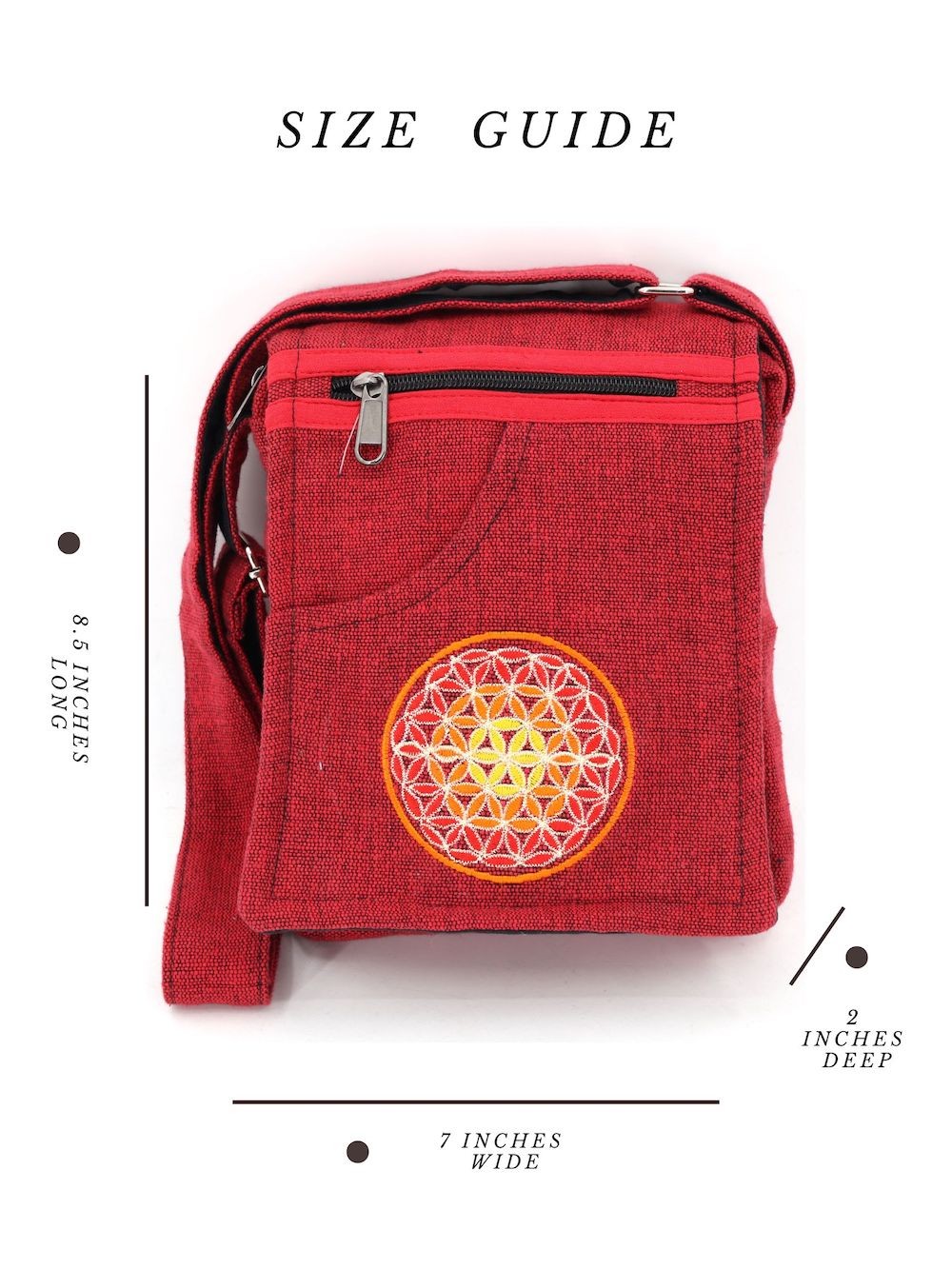 A versatile and beautiful Flower of Life designed hand embroidered 100% Natural THC Free Himalaya Hand woven Cotton Fabric stitched by talented artisans in Himalaya Range of Nepal. Support underprivileged Nepalese communities with your purchase. Hand wash or Machine wash separately in cold water.
